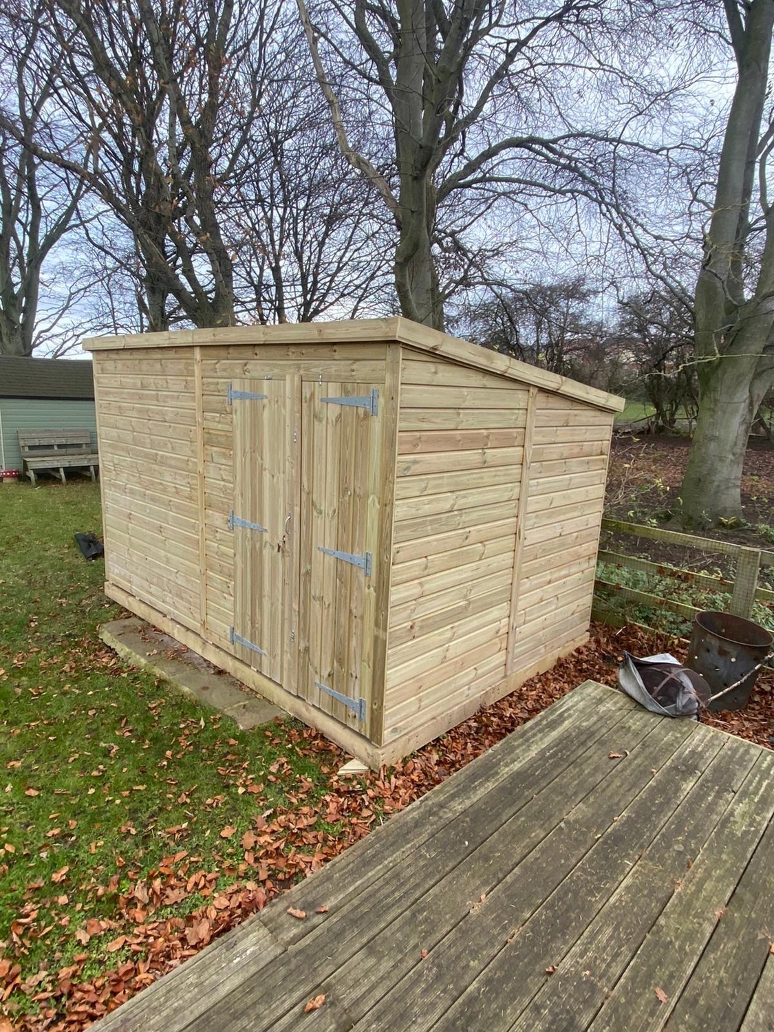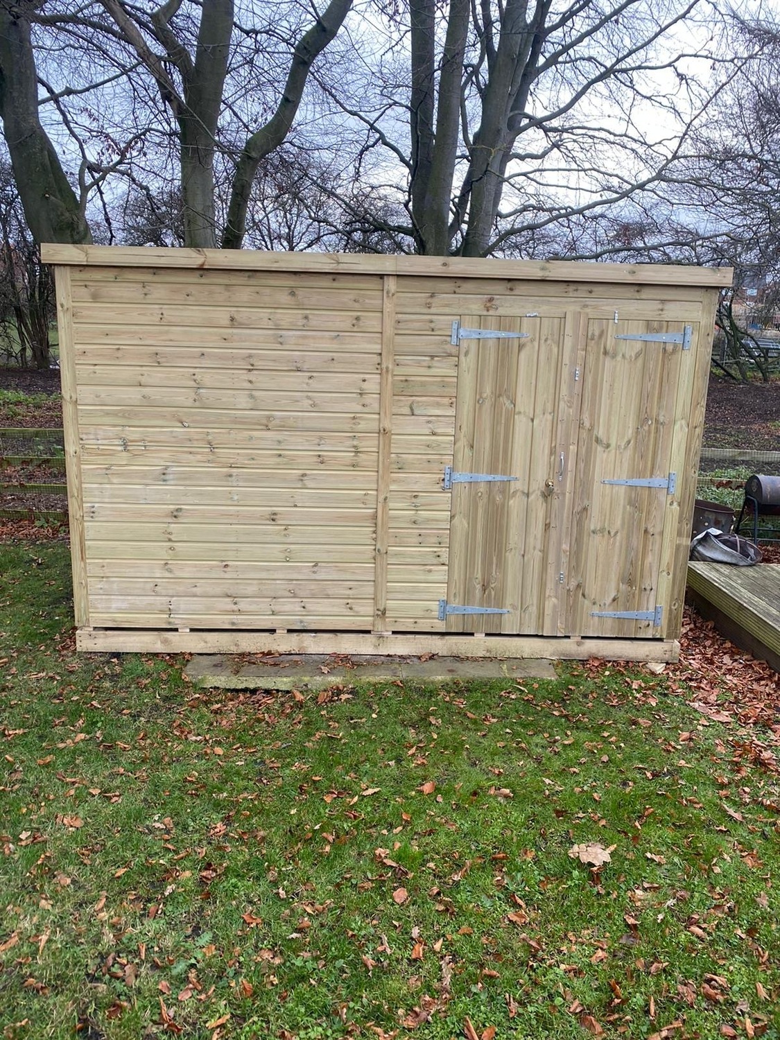 12x10 pent roofed shed in our tanalised 19mm T&G, giving standard protection for 15 to 20 years without you having to treat it yourself.