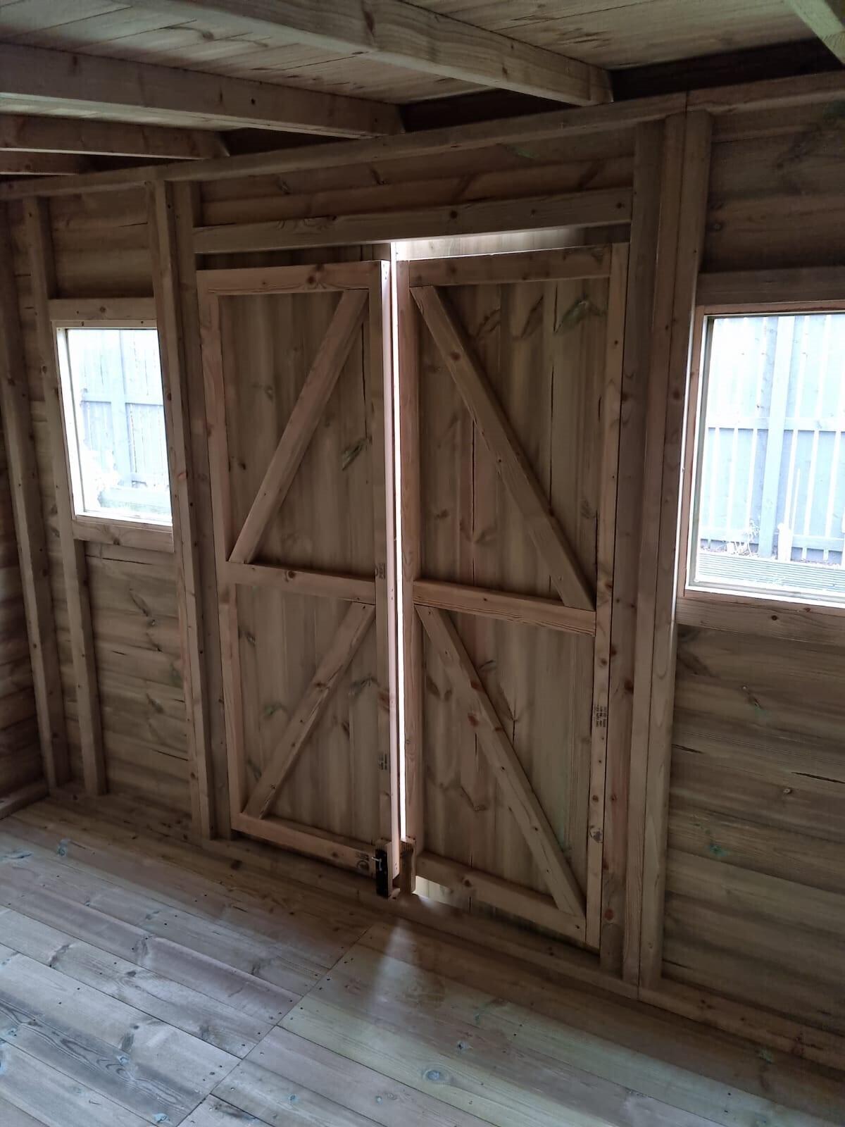 The shed has a 4ft wide 6ft high double door and 2 windows.