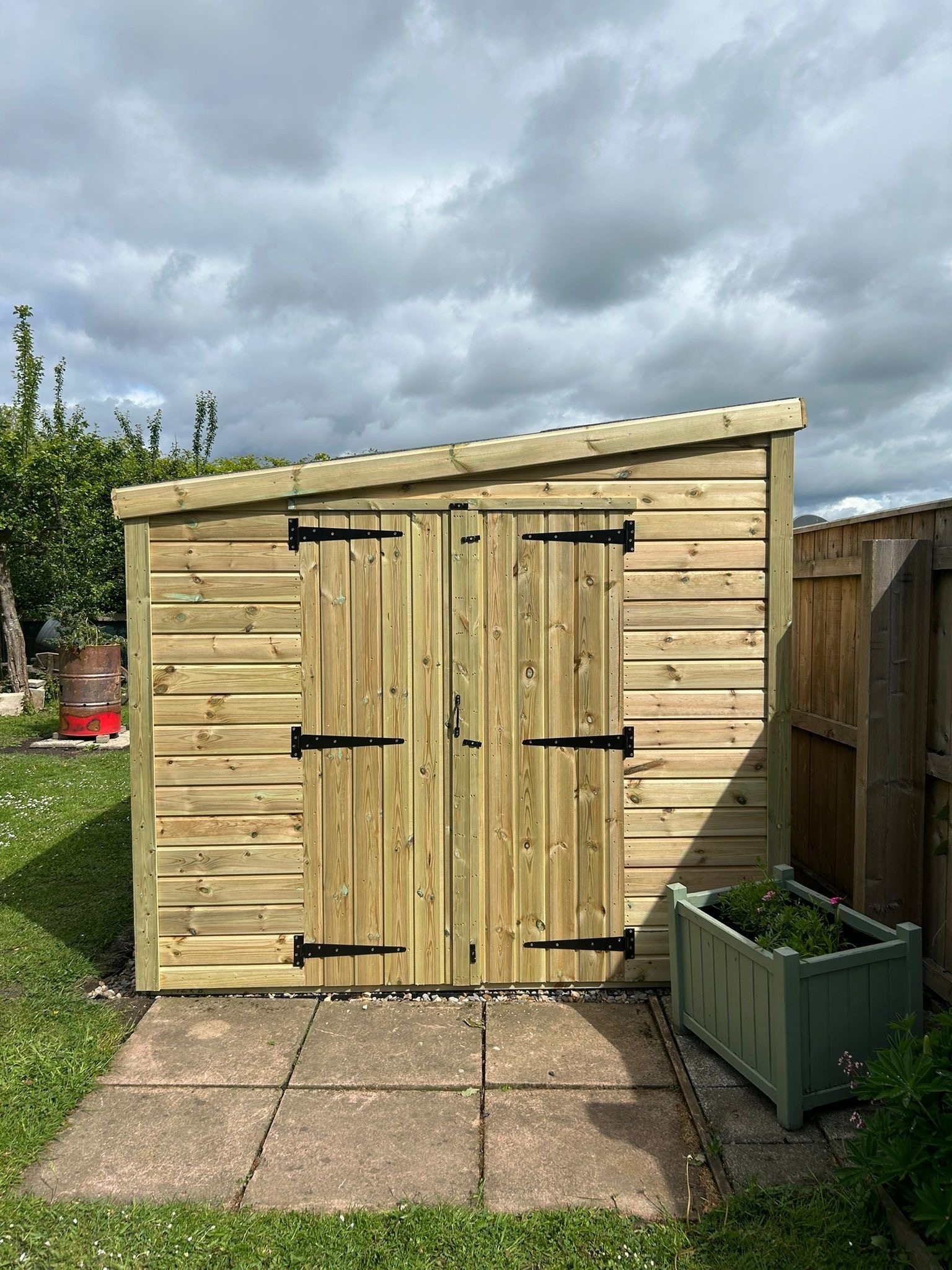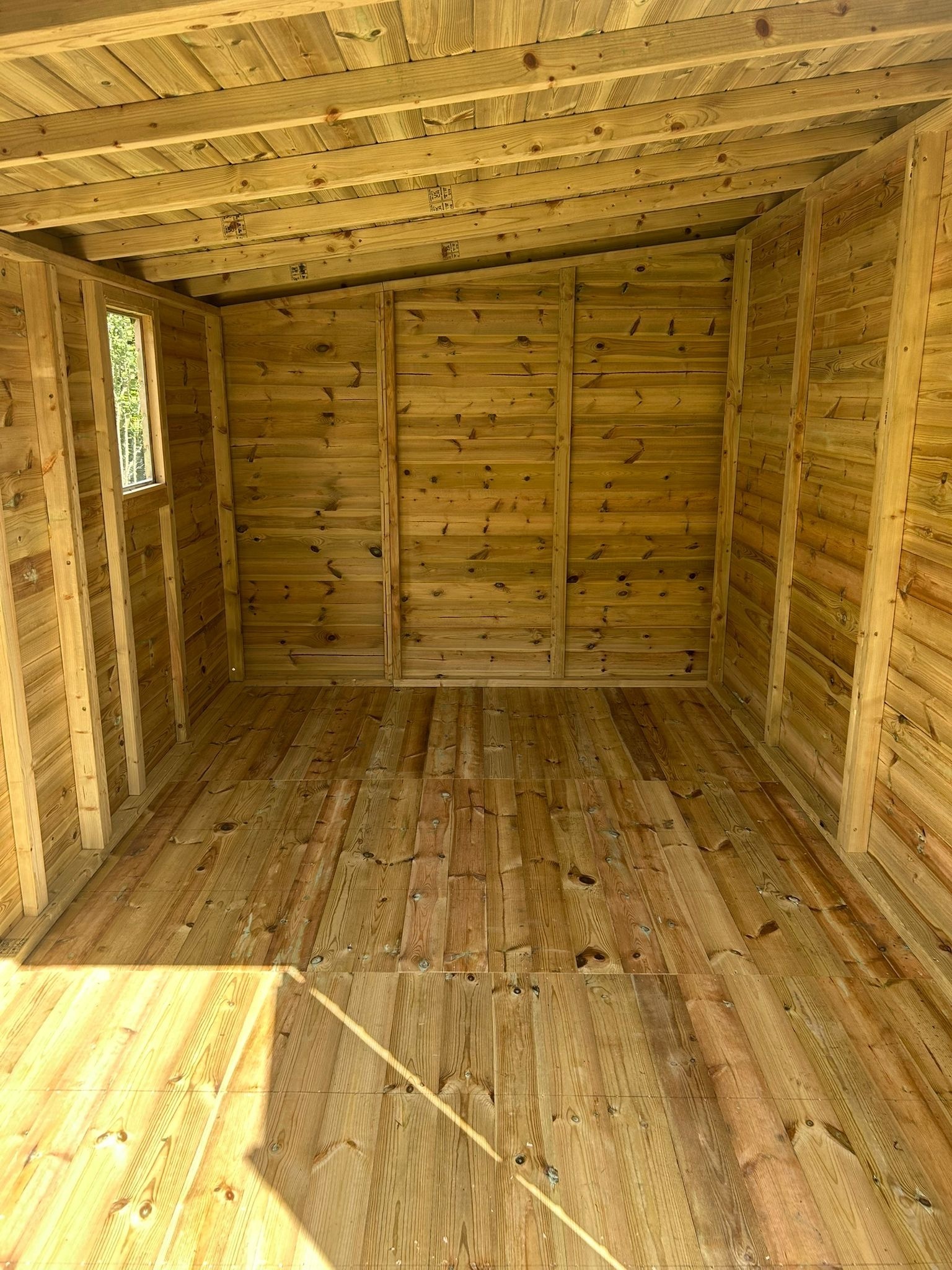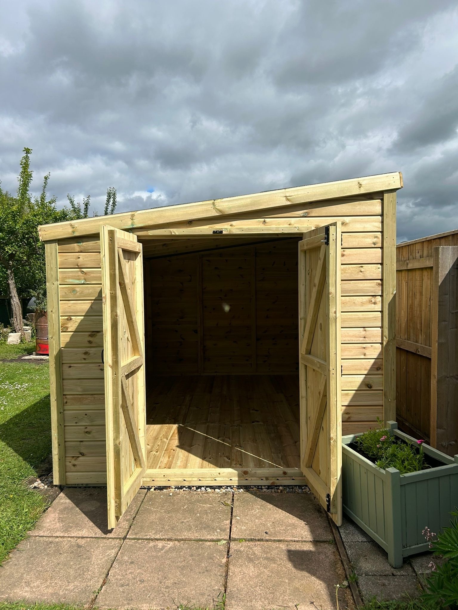 12x8 pent roofed shed in our tanalised 19mm T&G.