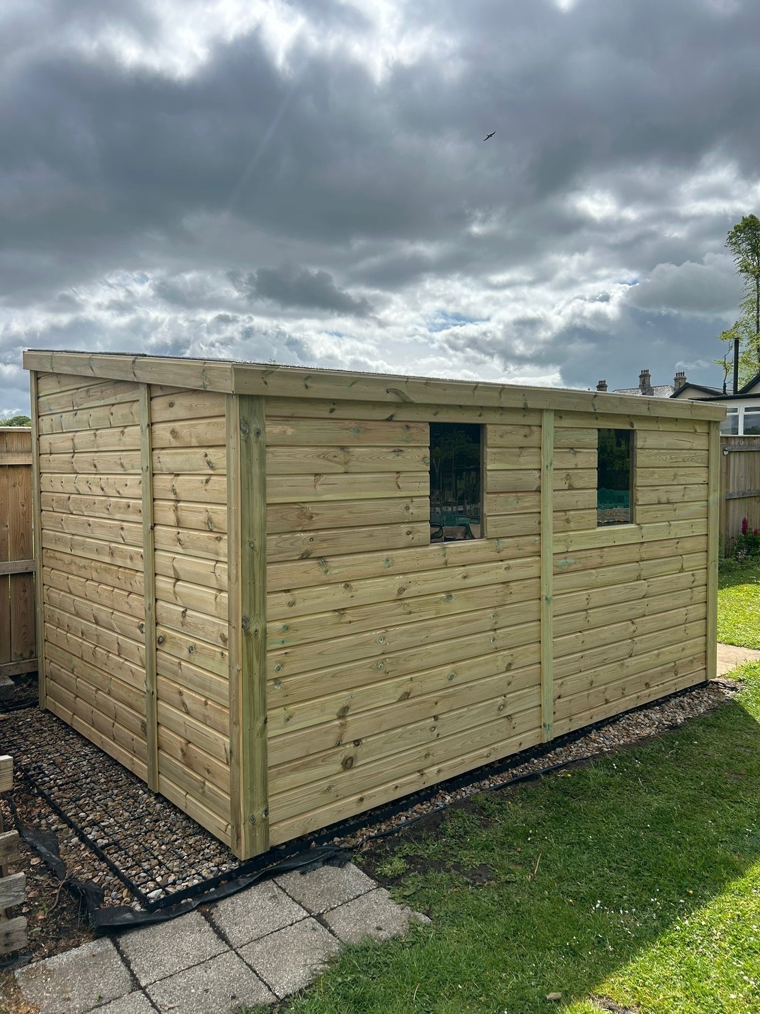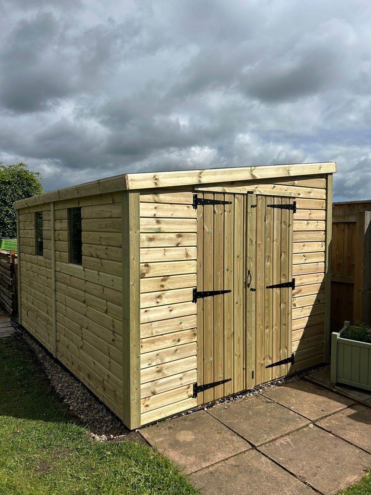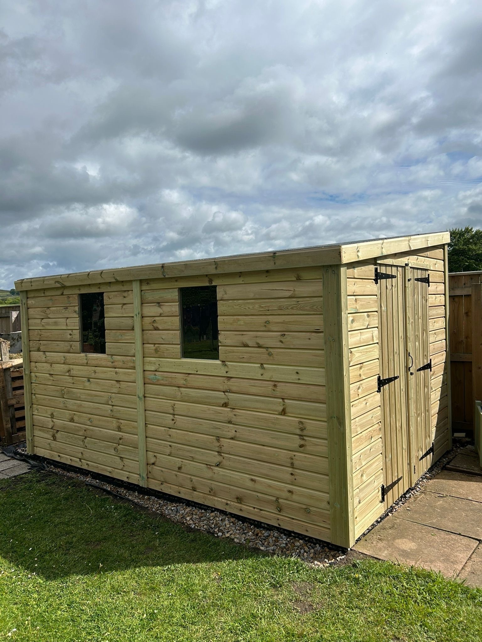 12x8 pent roofed shed in our tanalised 19mm T&G.
