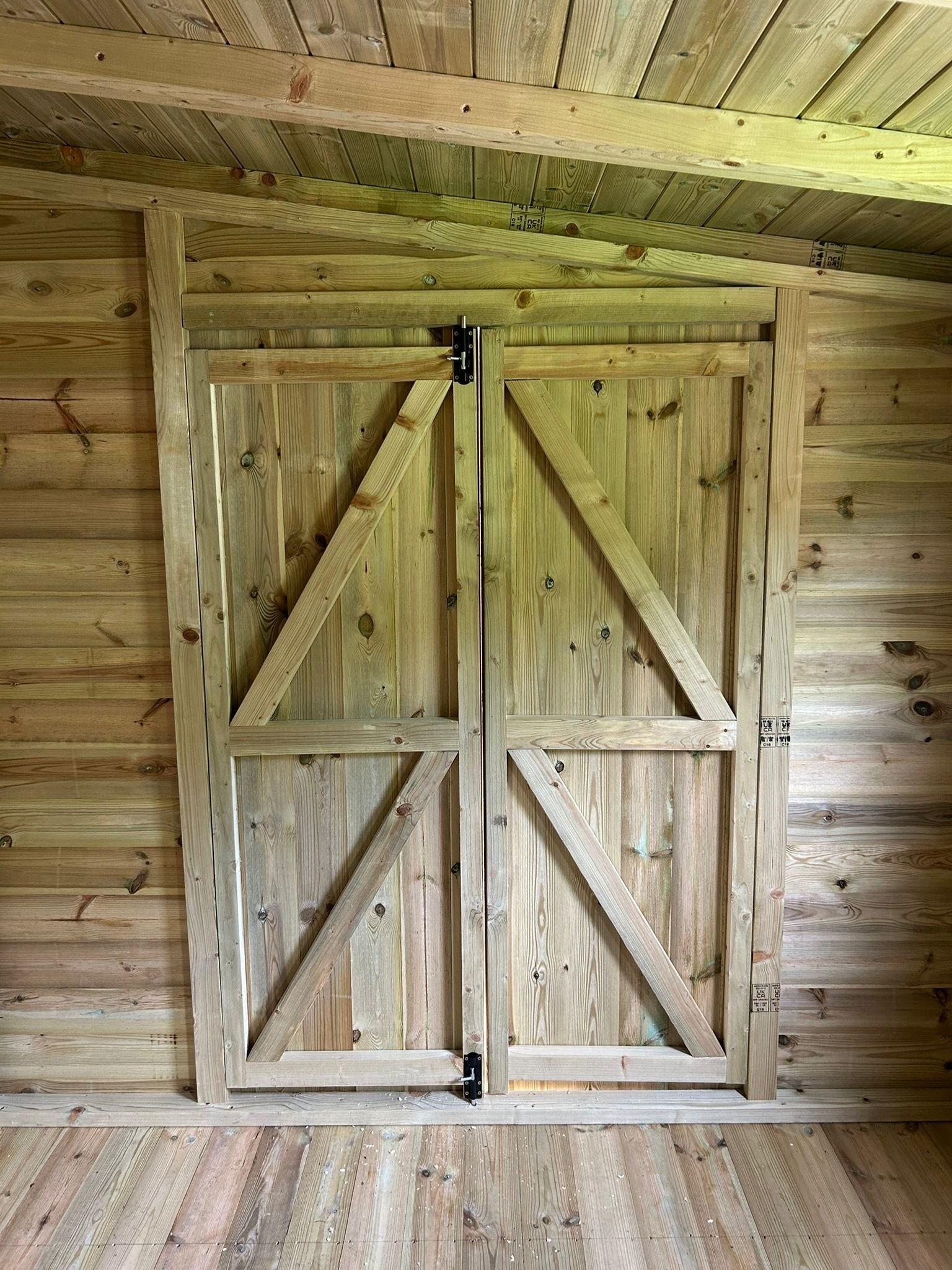 The shed has a 4ft wide 6ft high double door and 2 windows.