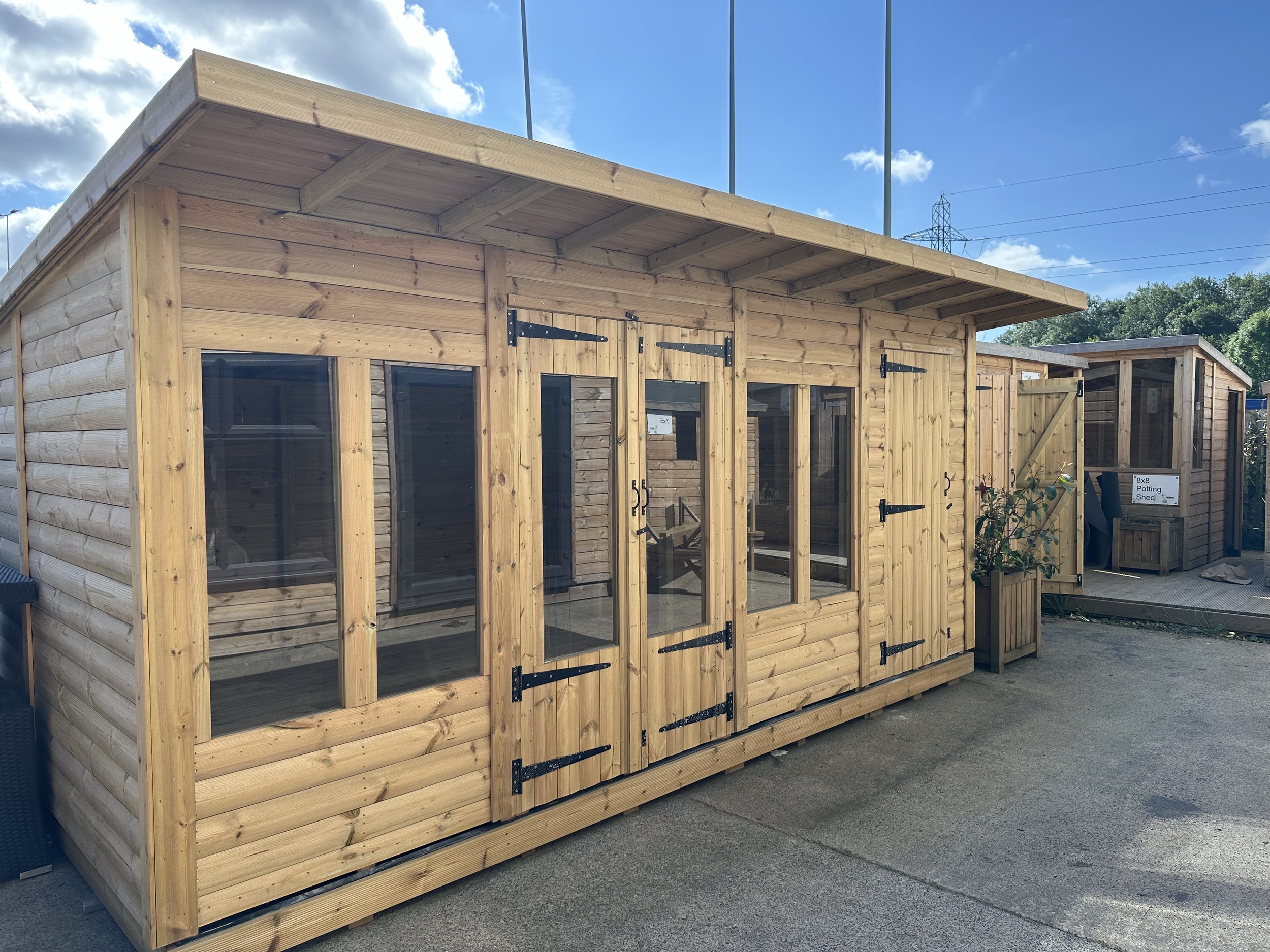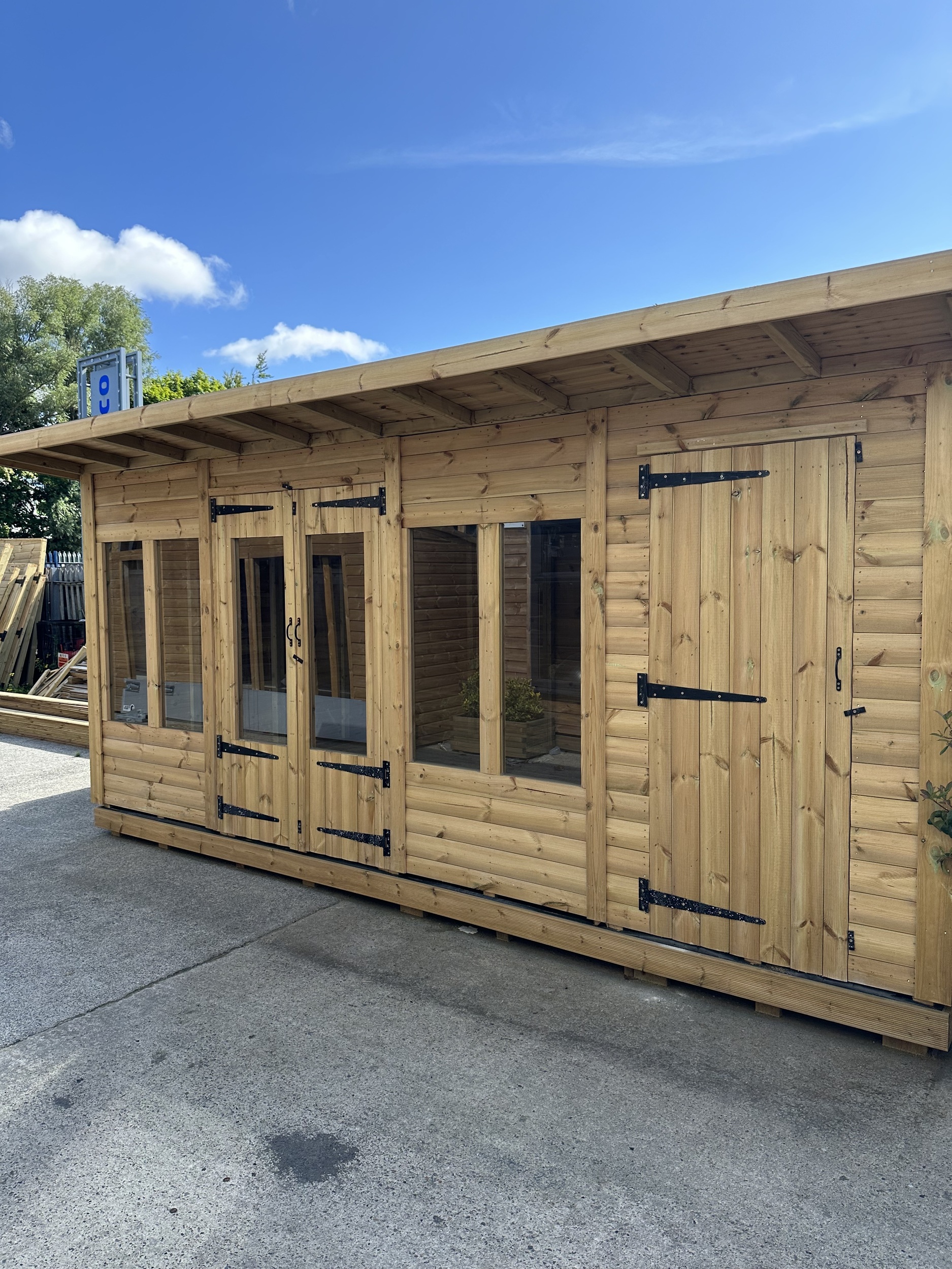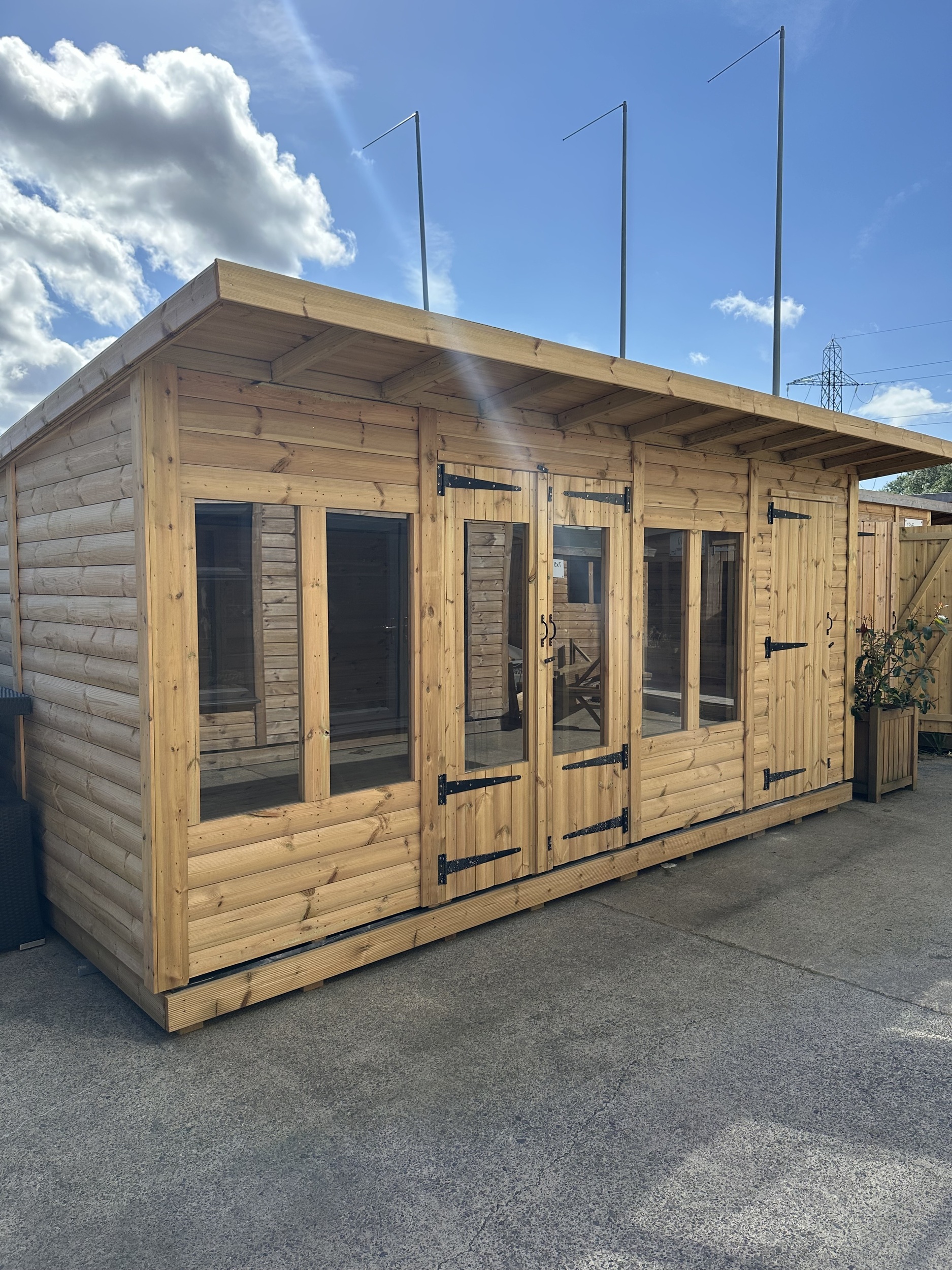 16x10 pent roofed summerhouse in our tanalised 28mm t&G logalp timber.
