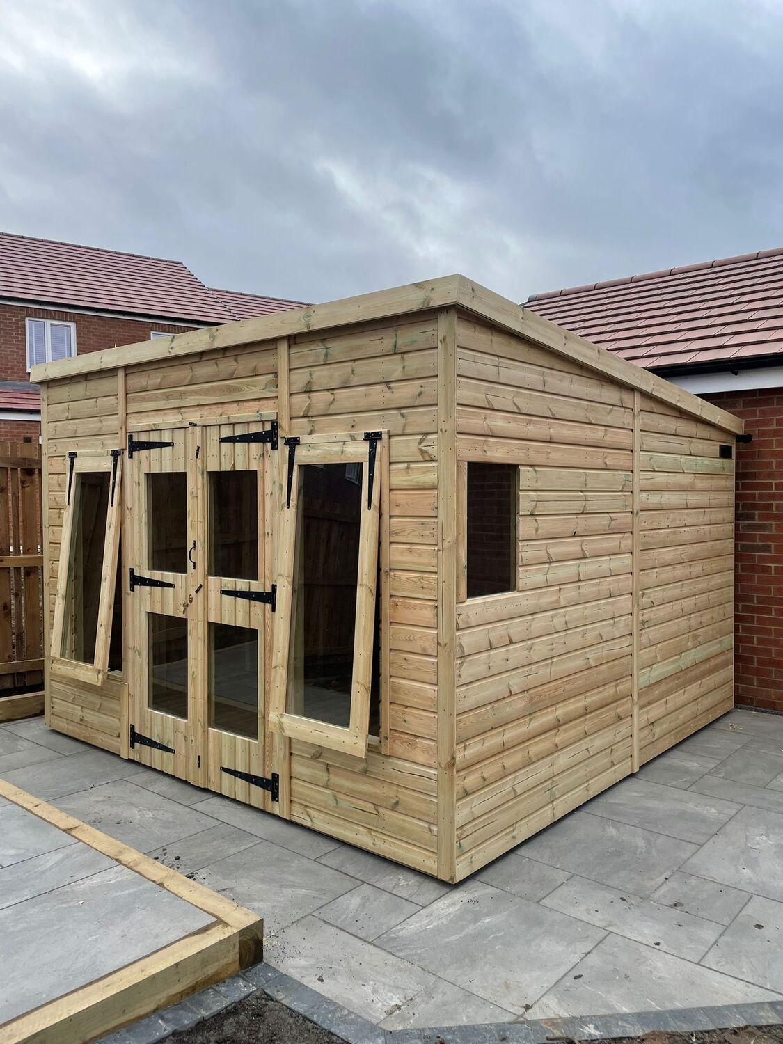 11x11 pent roofed summerhouse in our tanalised 19mm T&G.