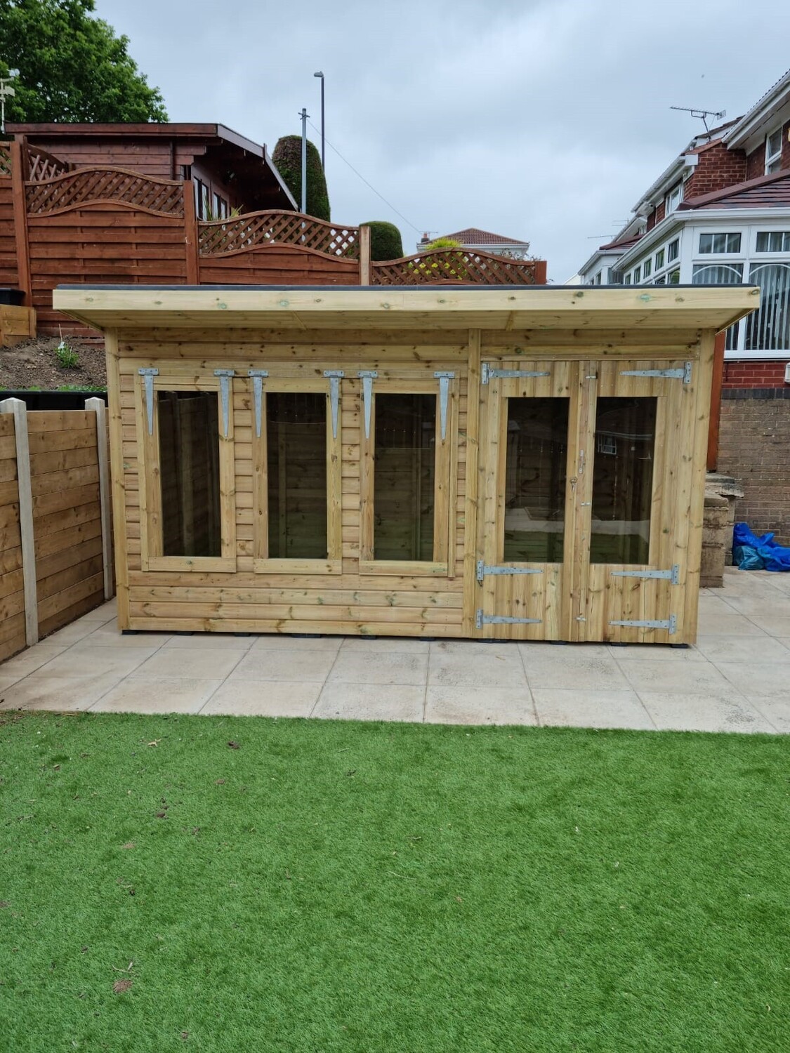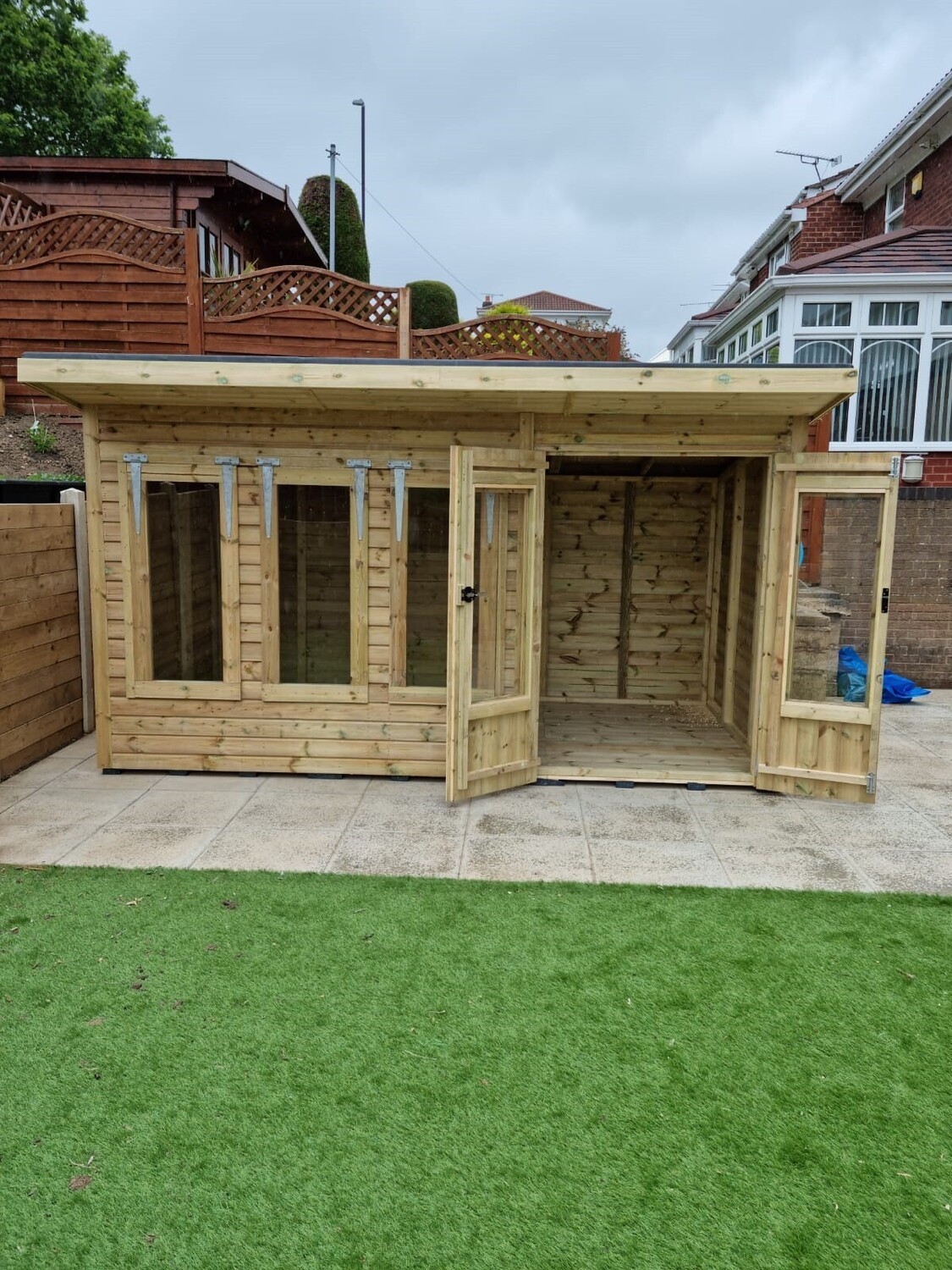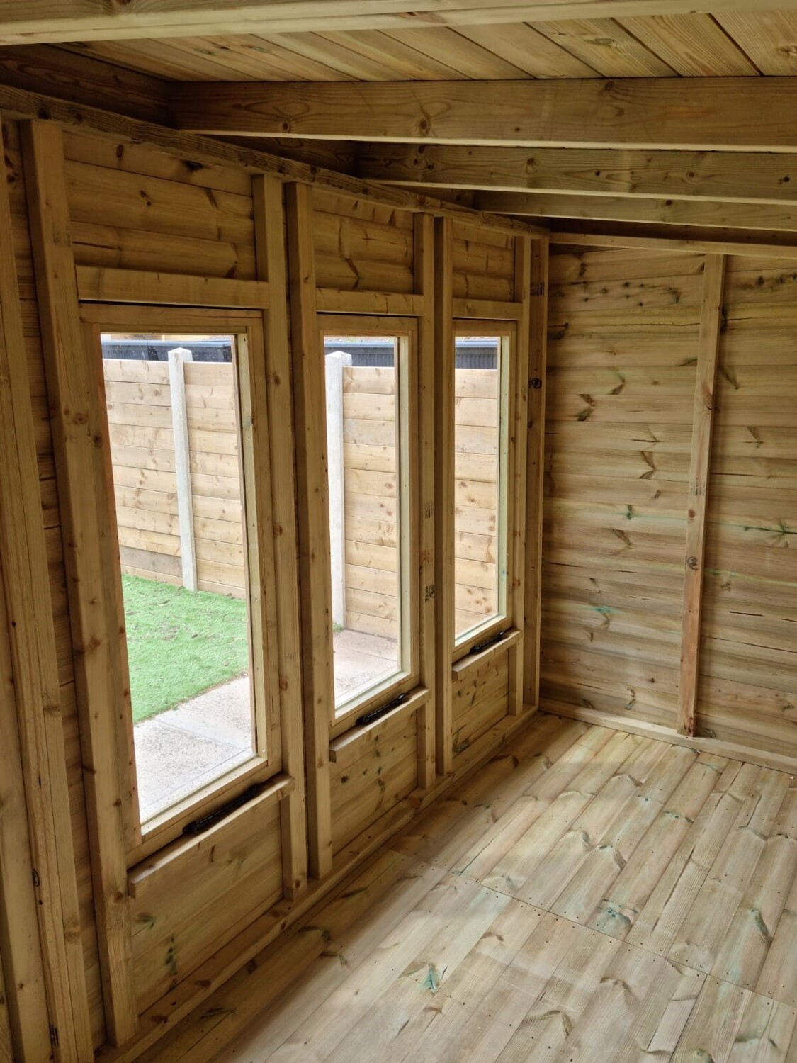 14x7 pent roofed summerhouse in our tanalised 19mm T&G.