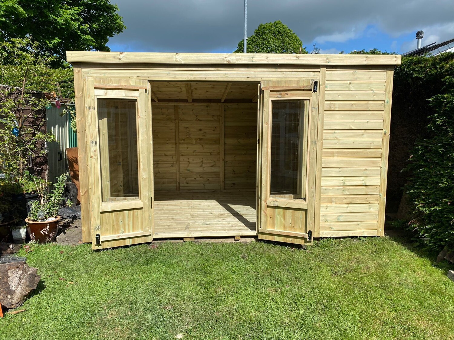12x9 pent roofed summerhouse in our tanalised 19mm T&G.