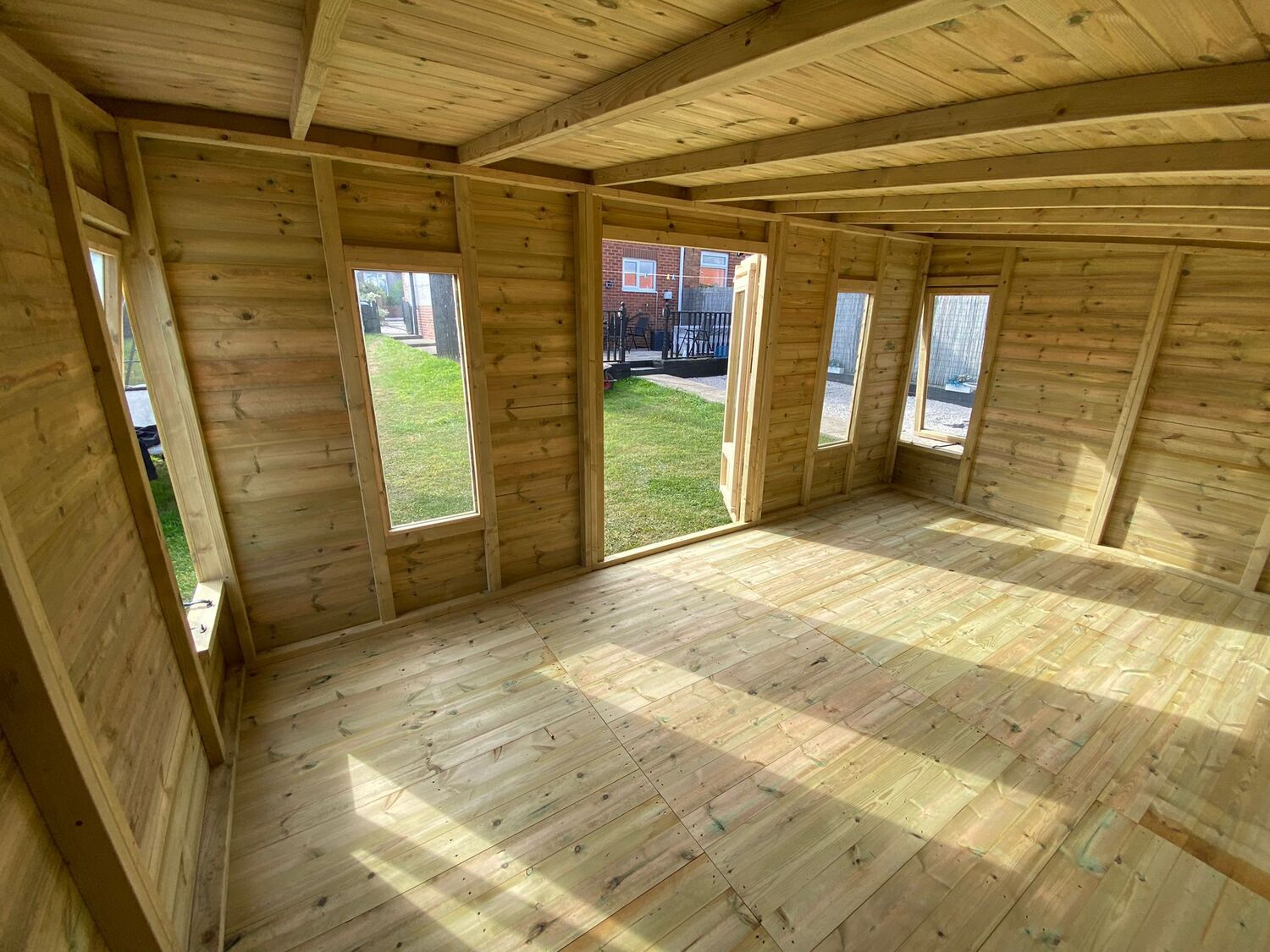 The summerhouse is 16ft wide at the front where the doors are and 10ft deep.
