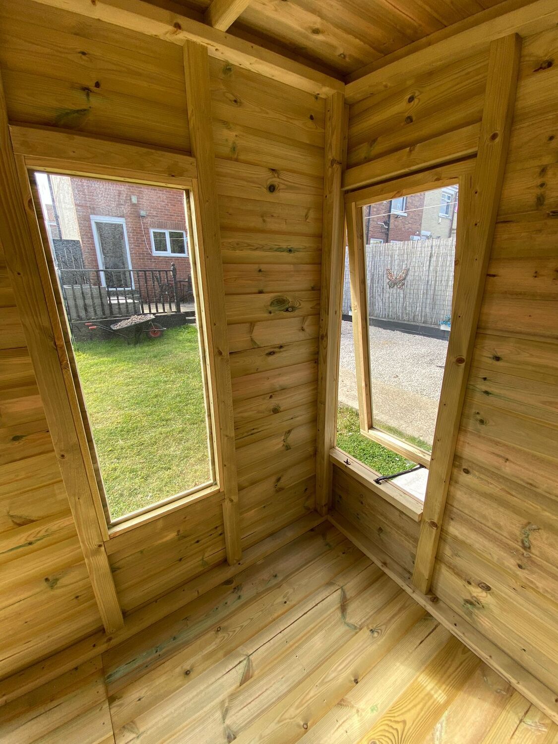The summerhouse has 4ft wide 6ft high double door and 6 long windows, 2 of which are opening.