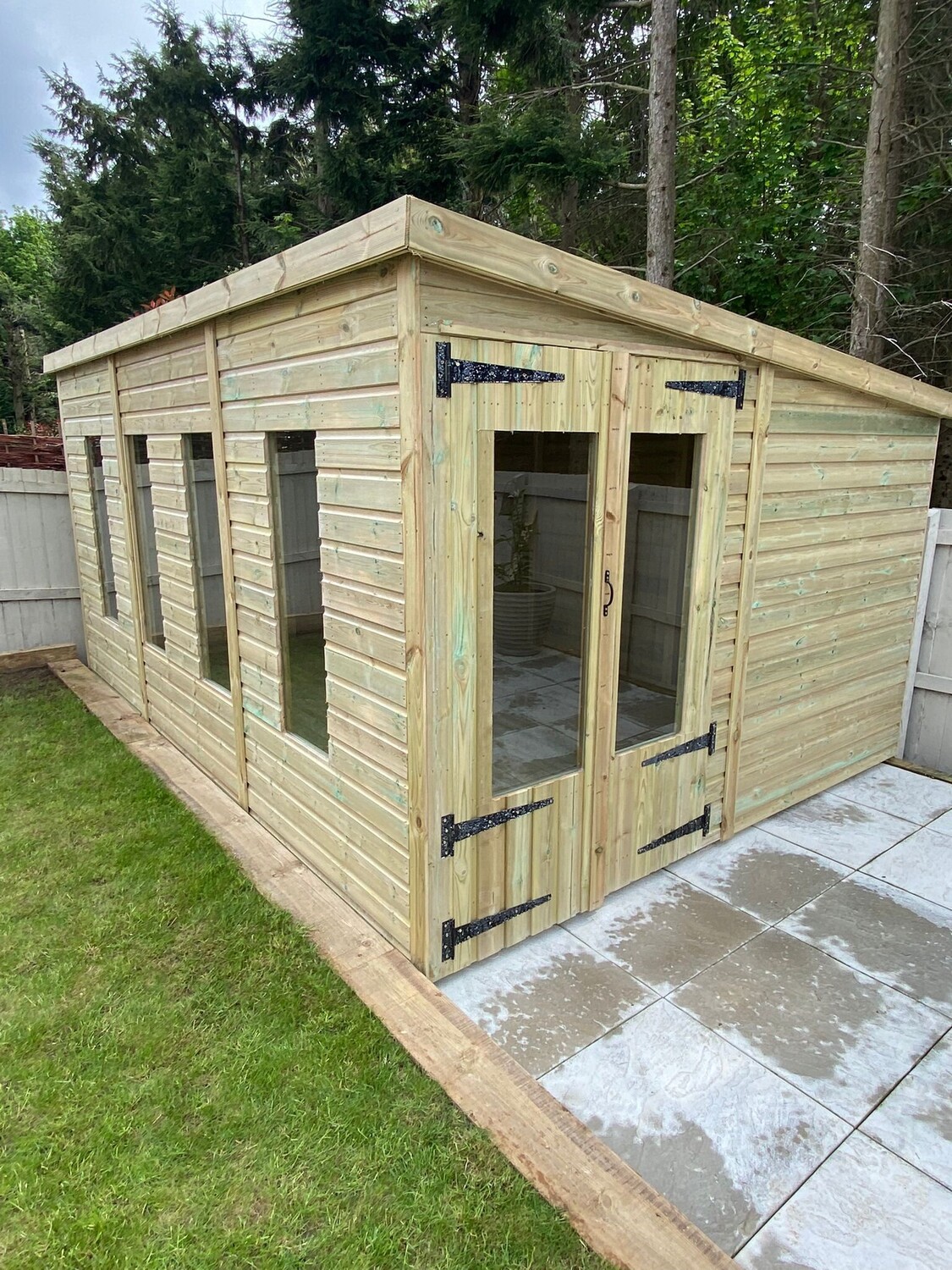 14x10 pent roofed summerhouse in our tanalised 19mm T&G.