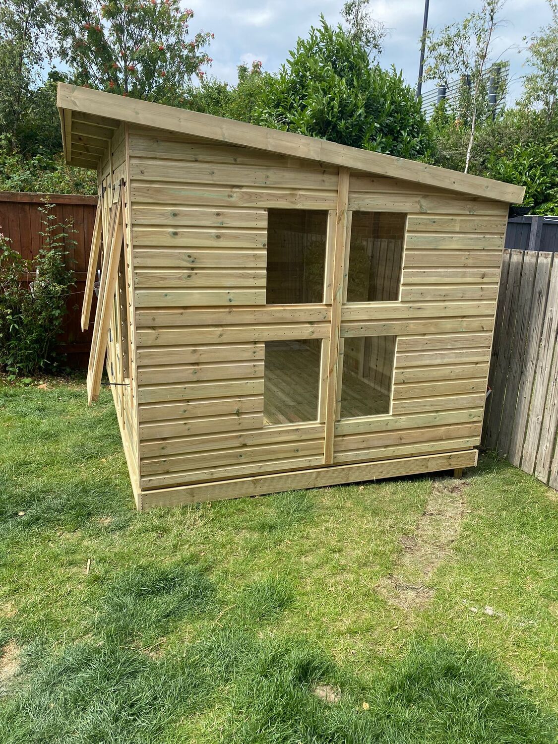 12x8 pent roofed summerhouse in our tanalised 19mm T&G.