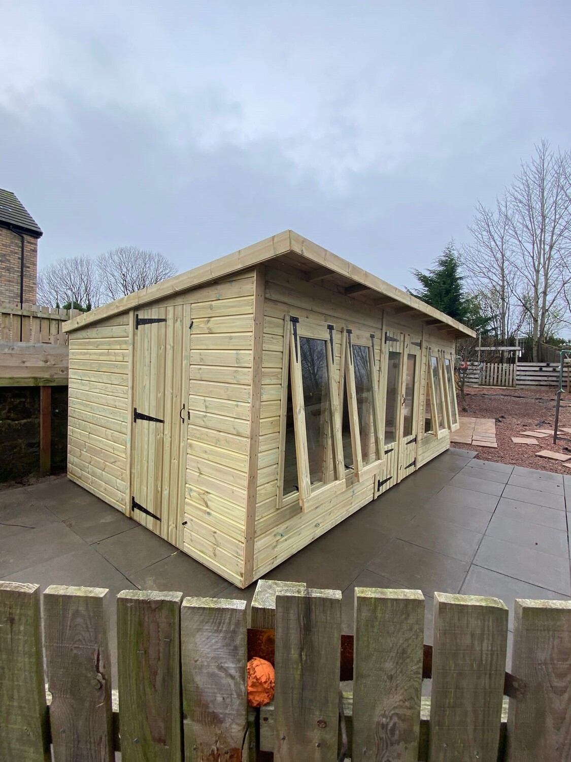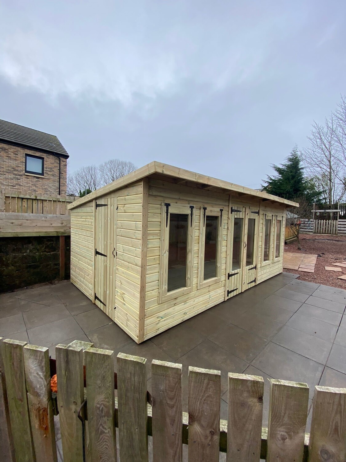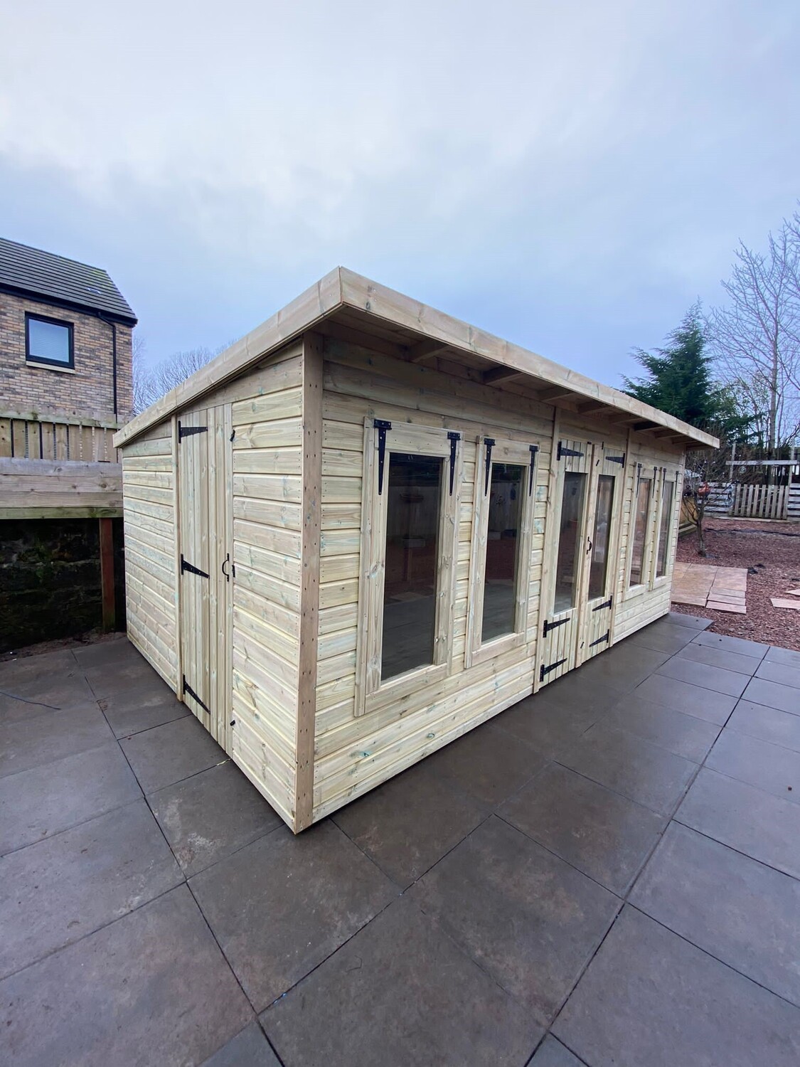 18x10 pent roofed summerhouse in our tanalised 19mm T&G.