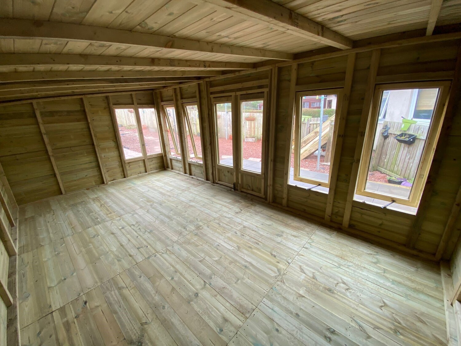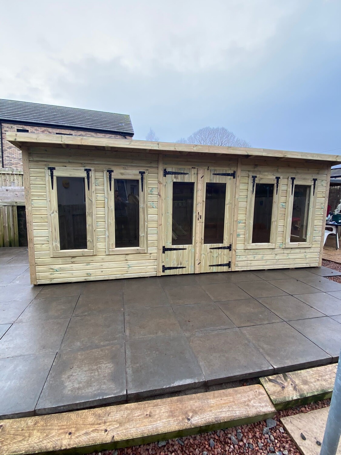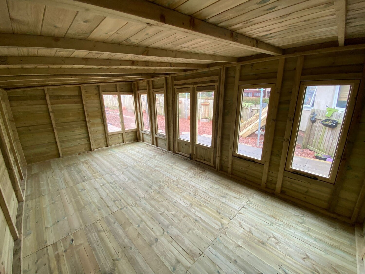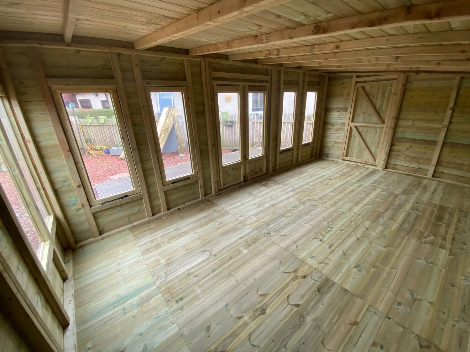 18x10 pent roofed summerhouse in our tanalised 19mm T&G.