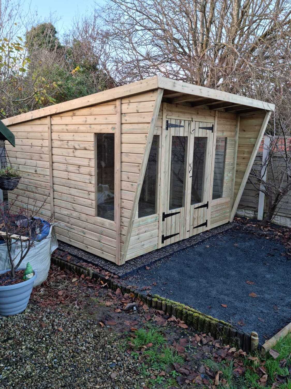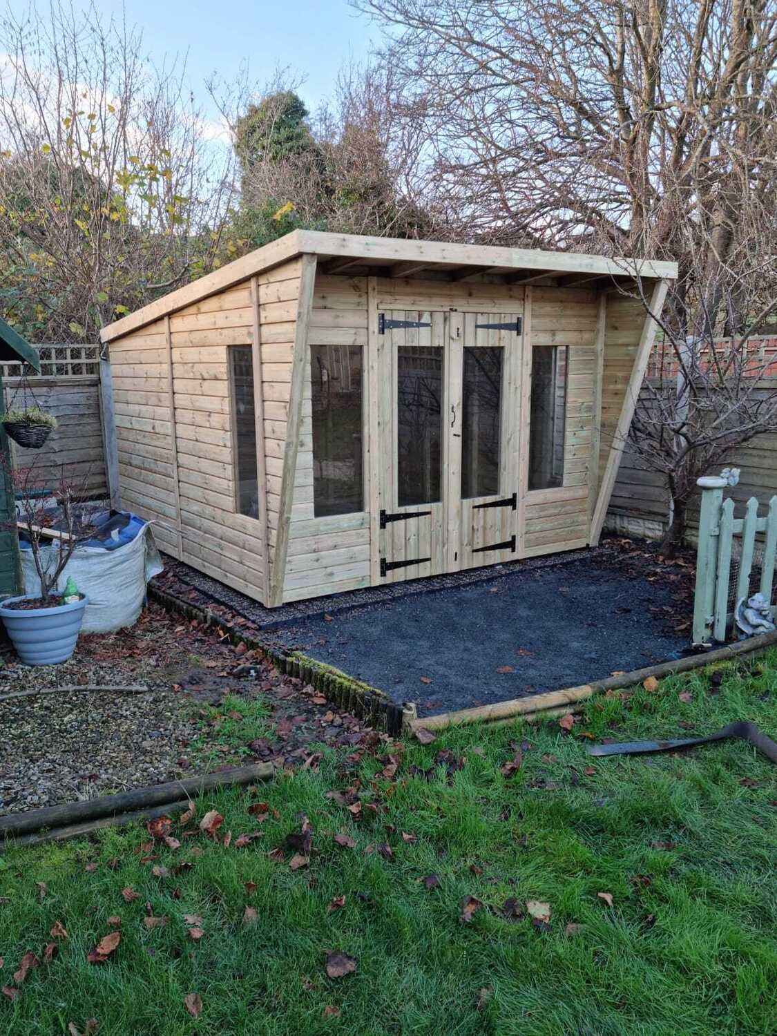 10x10 pent roofed summerhouse in our tanalised 19mm T&G.