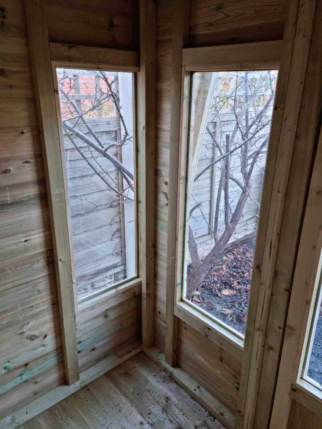 The summerhouse has 4ft wide 6ft high double door and 6 long windows.