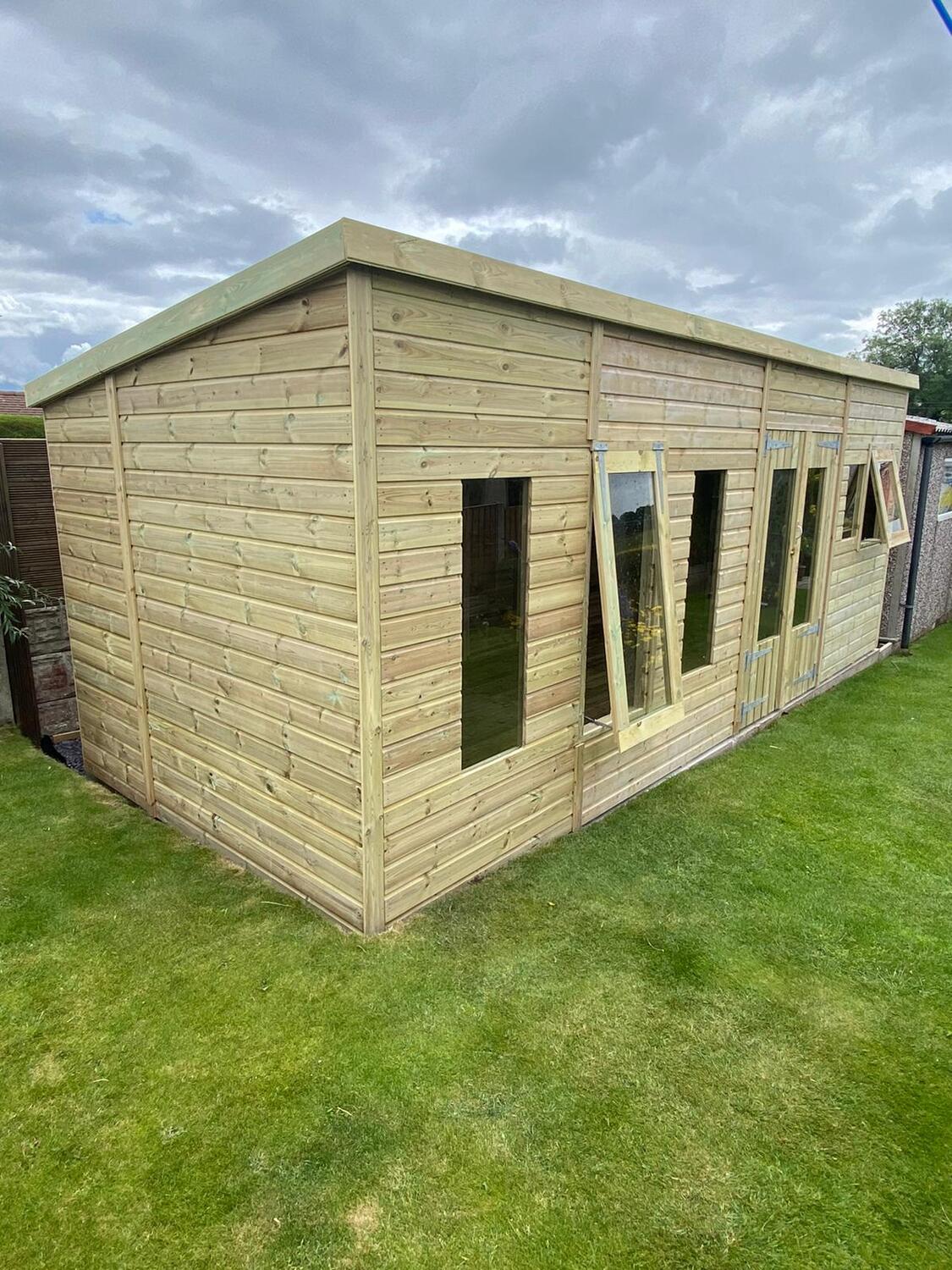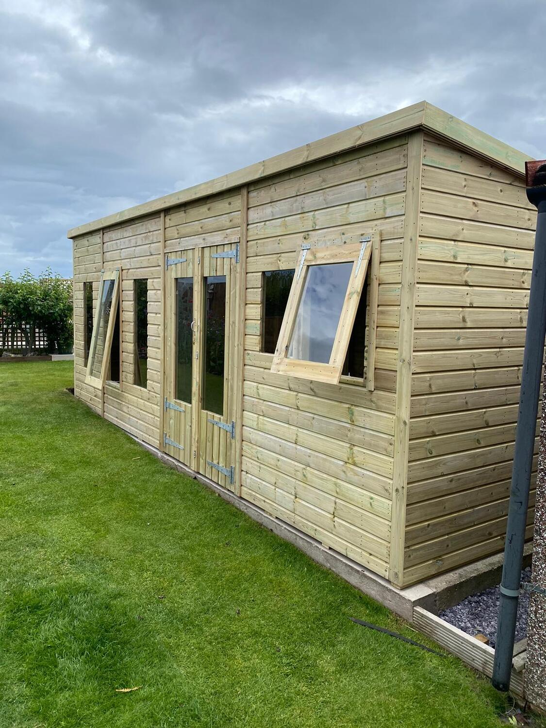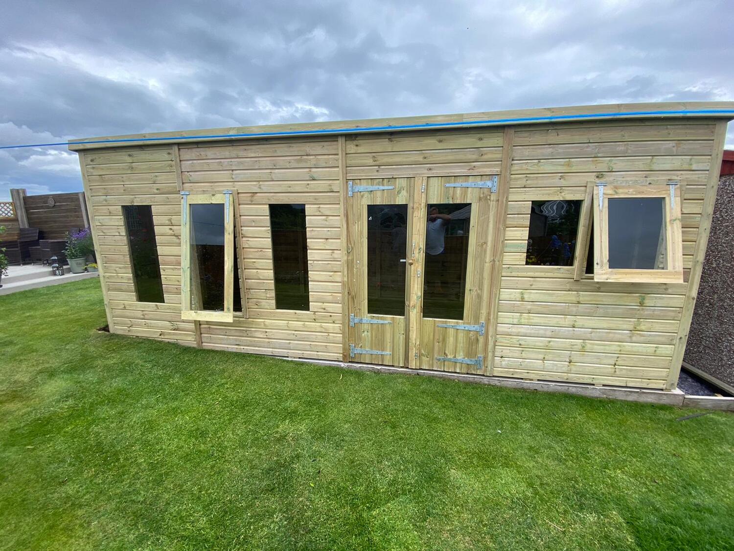 20x8 pent roofed summerhouse in our tanalised 19mm T&G.
