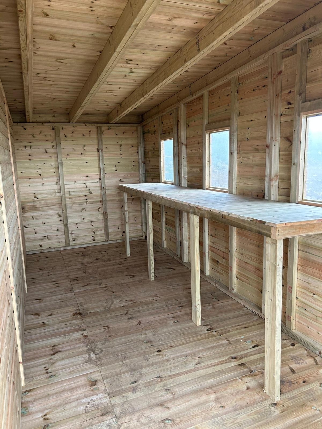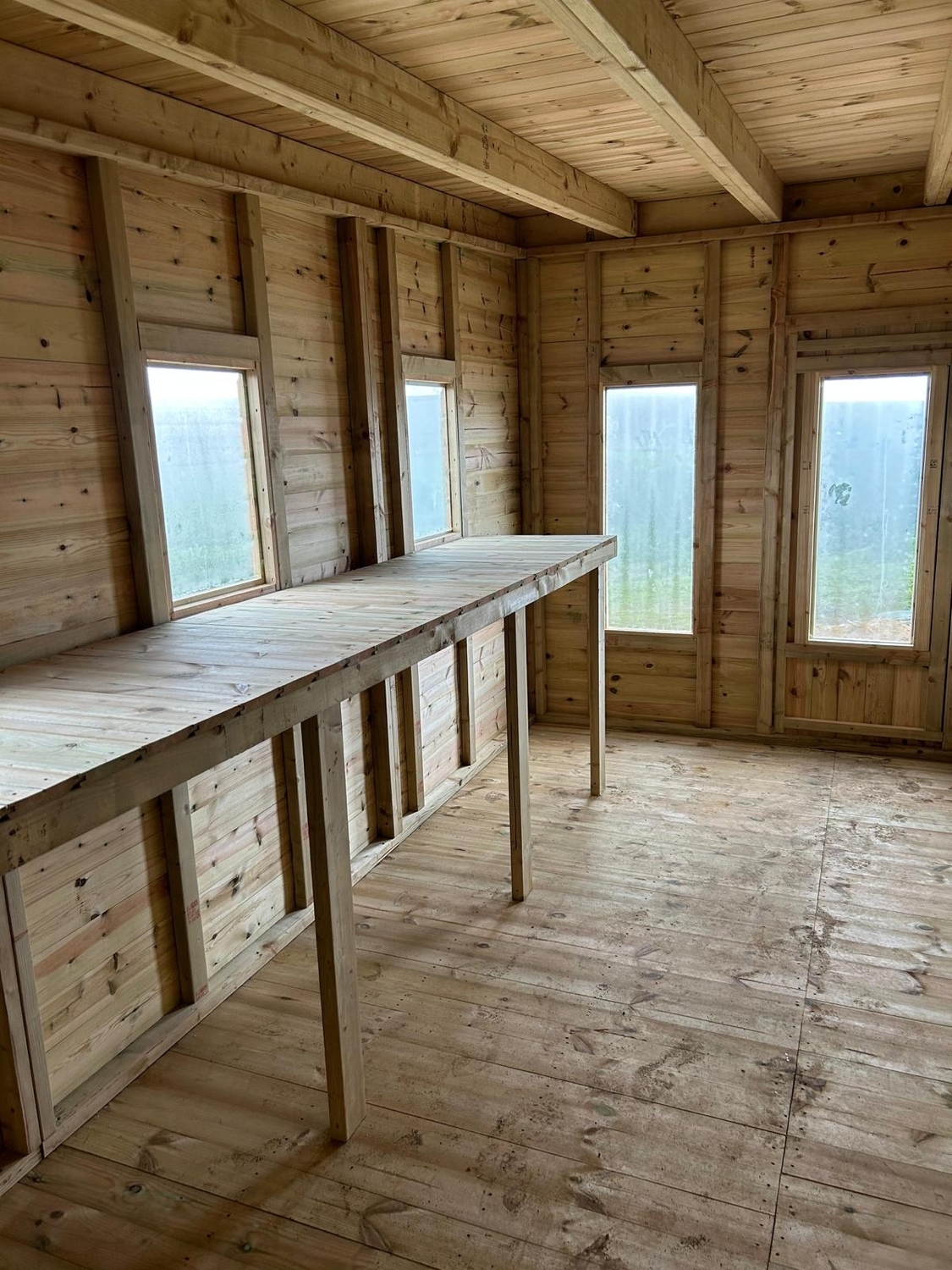 The summerhouse comes with 6 long windows, 3 standard windows and a 12ft work bench.