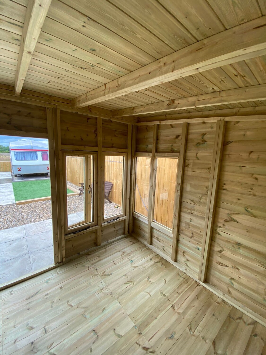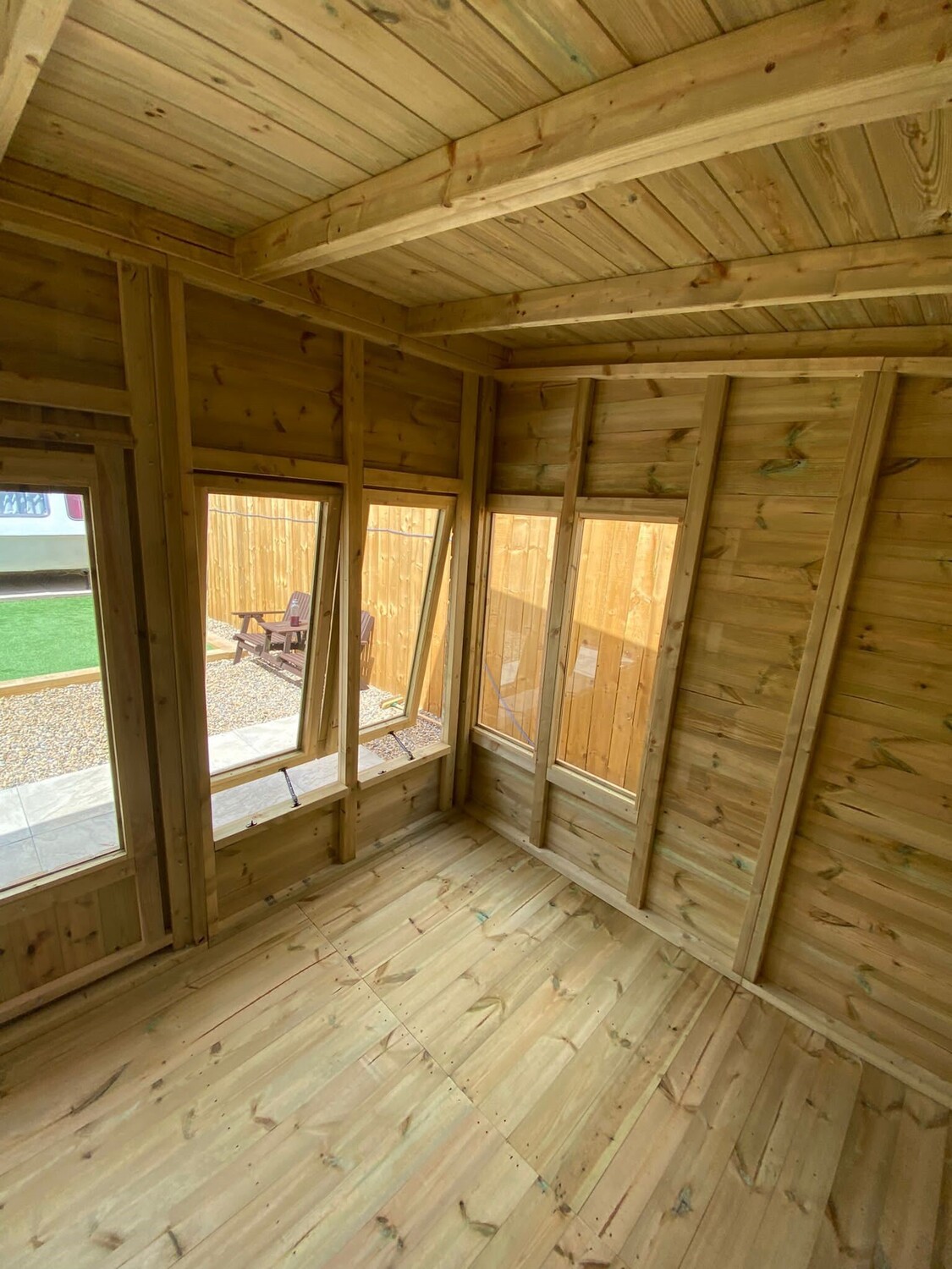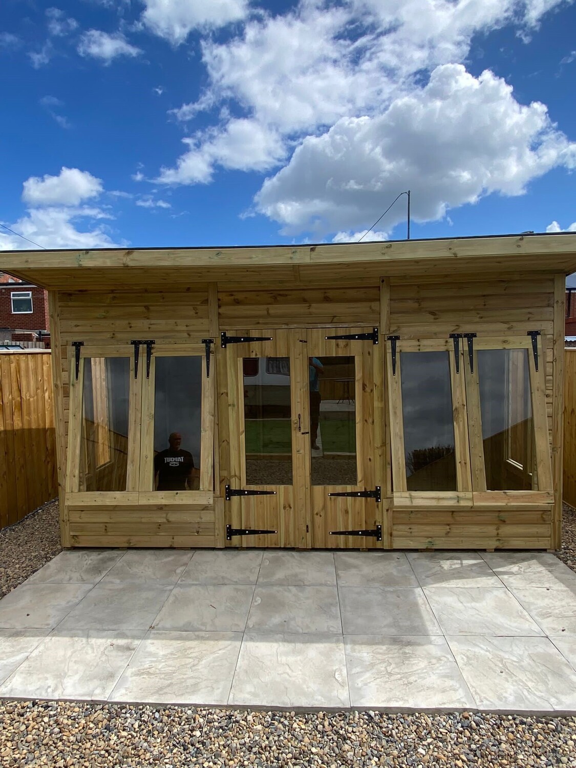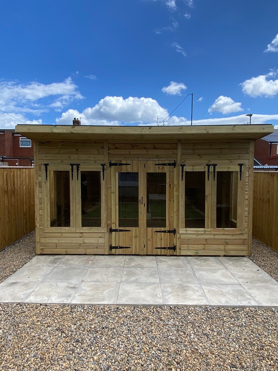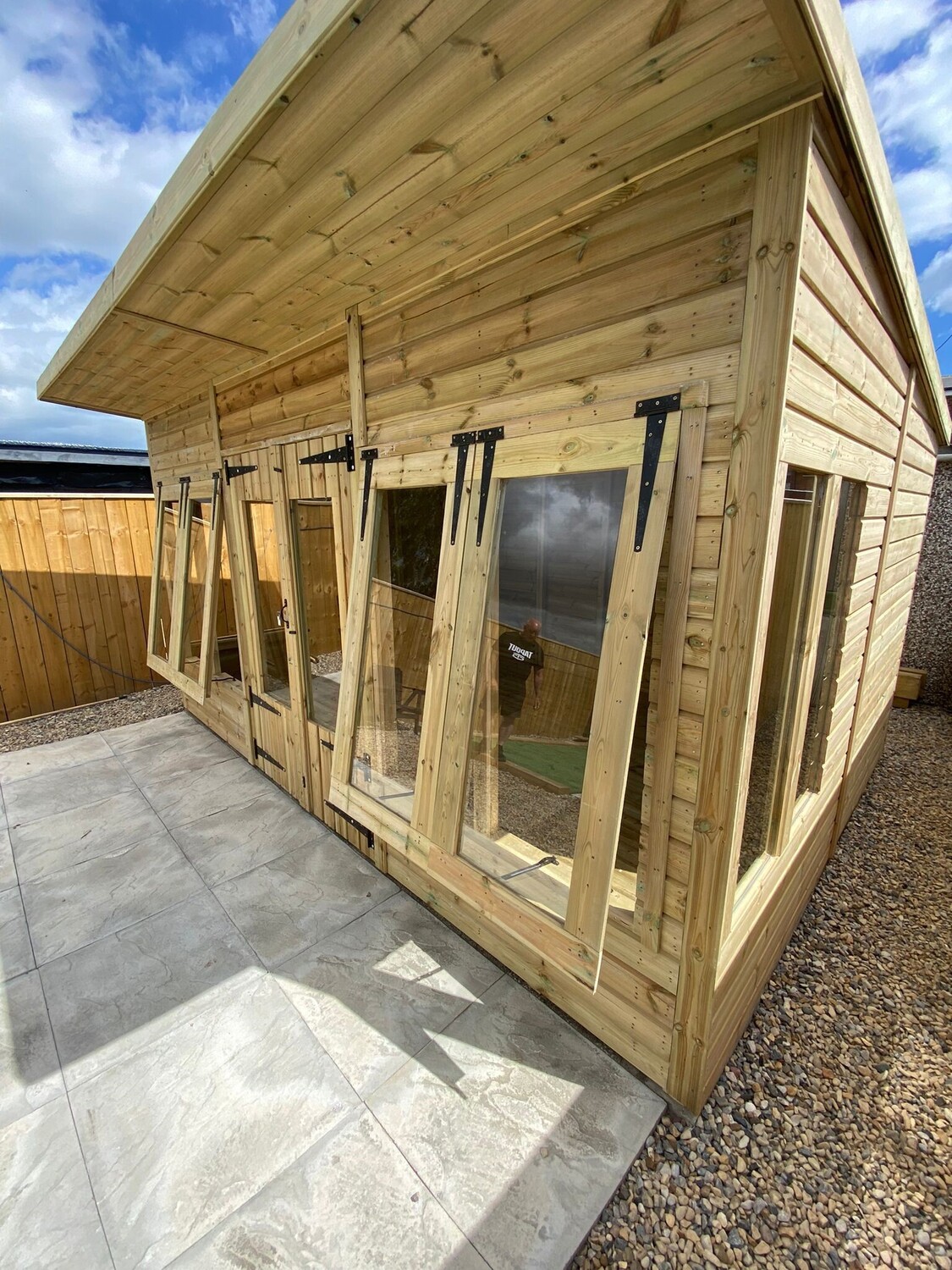 14x10 pent roofed summerhouse in our tanalised 19mm T&G.