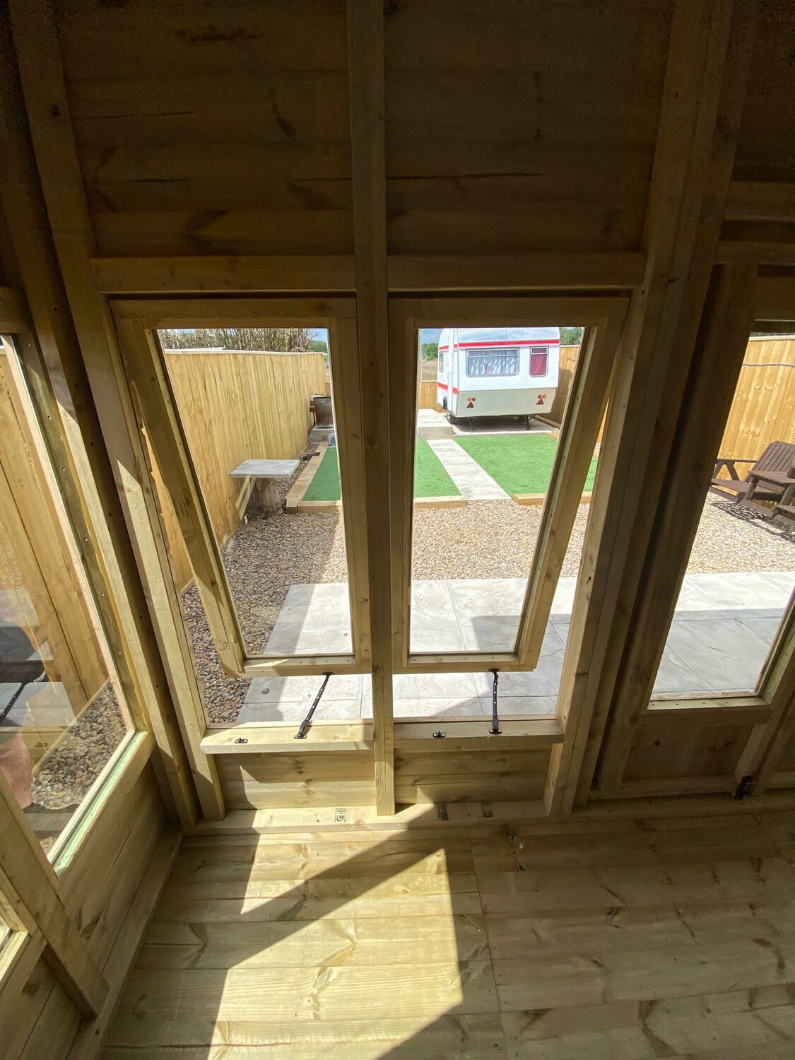 The summerhouse has 4ft wide 6ft high double door and 10 long windows, 4 of which are opening.
