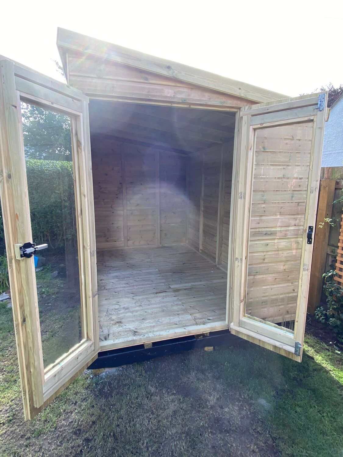 The summerhouse has 4ft wide 6ft high double door and 6 full length windows.
