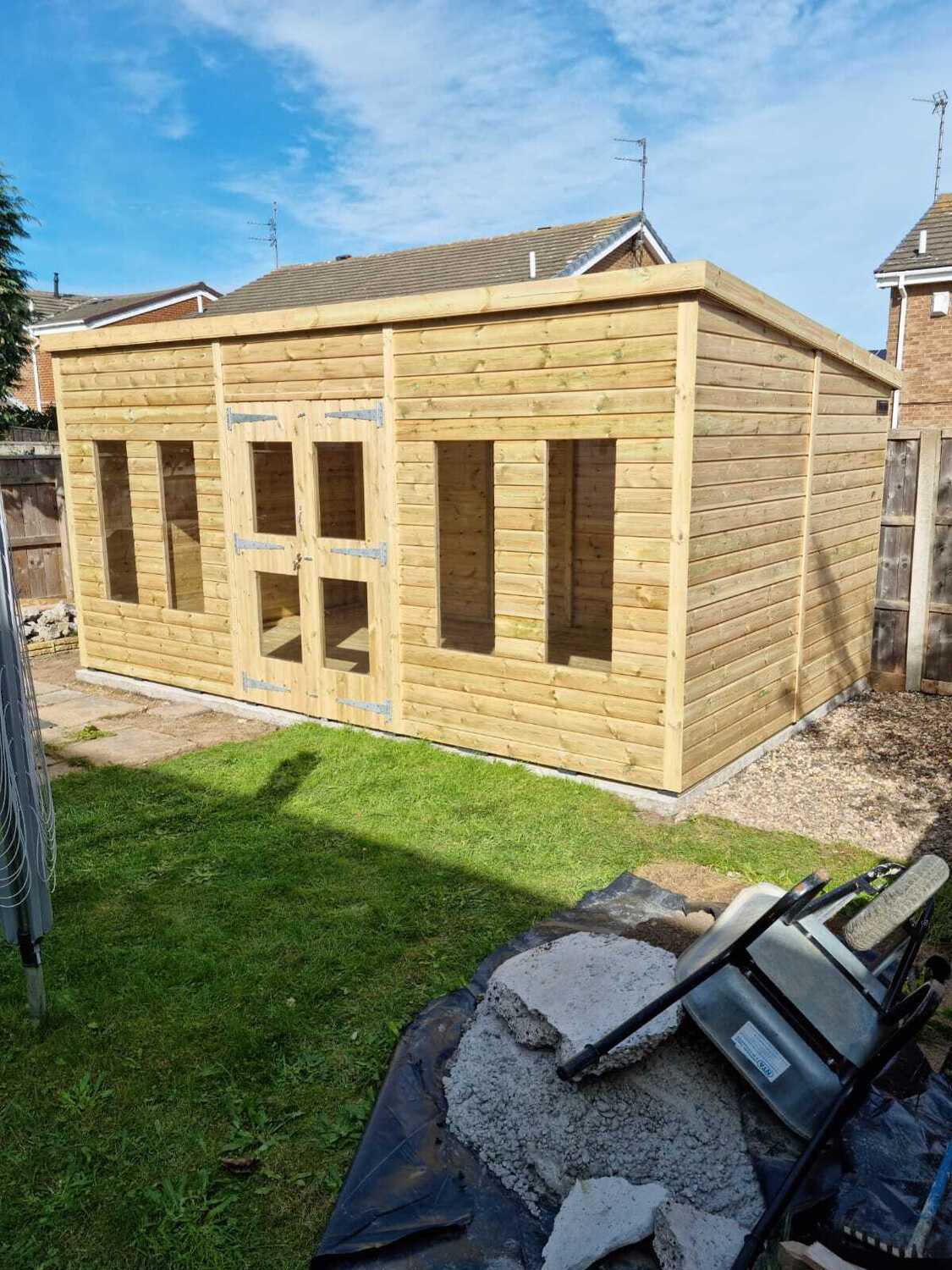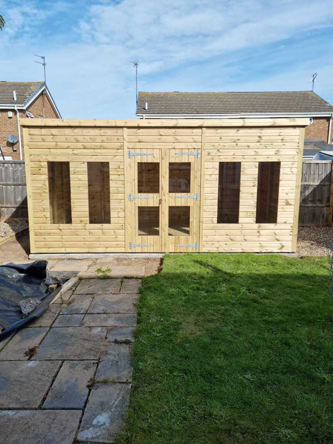 16x10 pent roofed summerhouse in our tanalised 19mm T&G.
