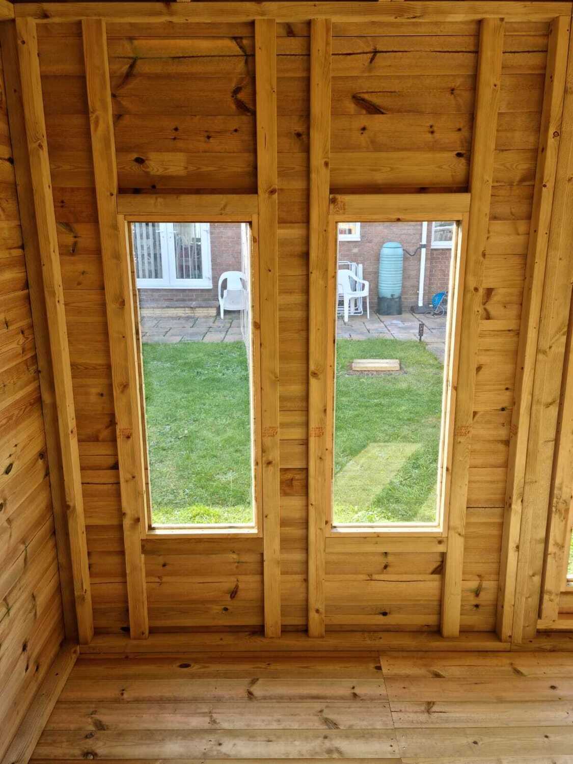 The summerhouse has 4ft wide 6ft high double door, 4 long windows & 4 standard windows.