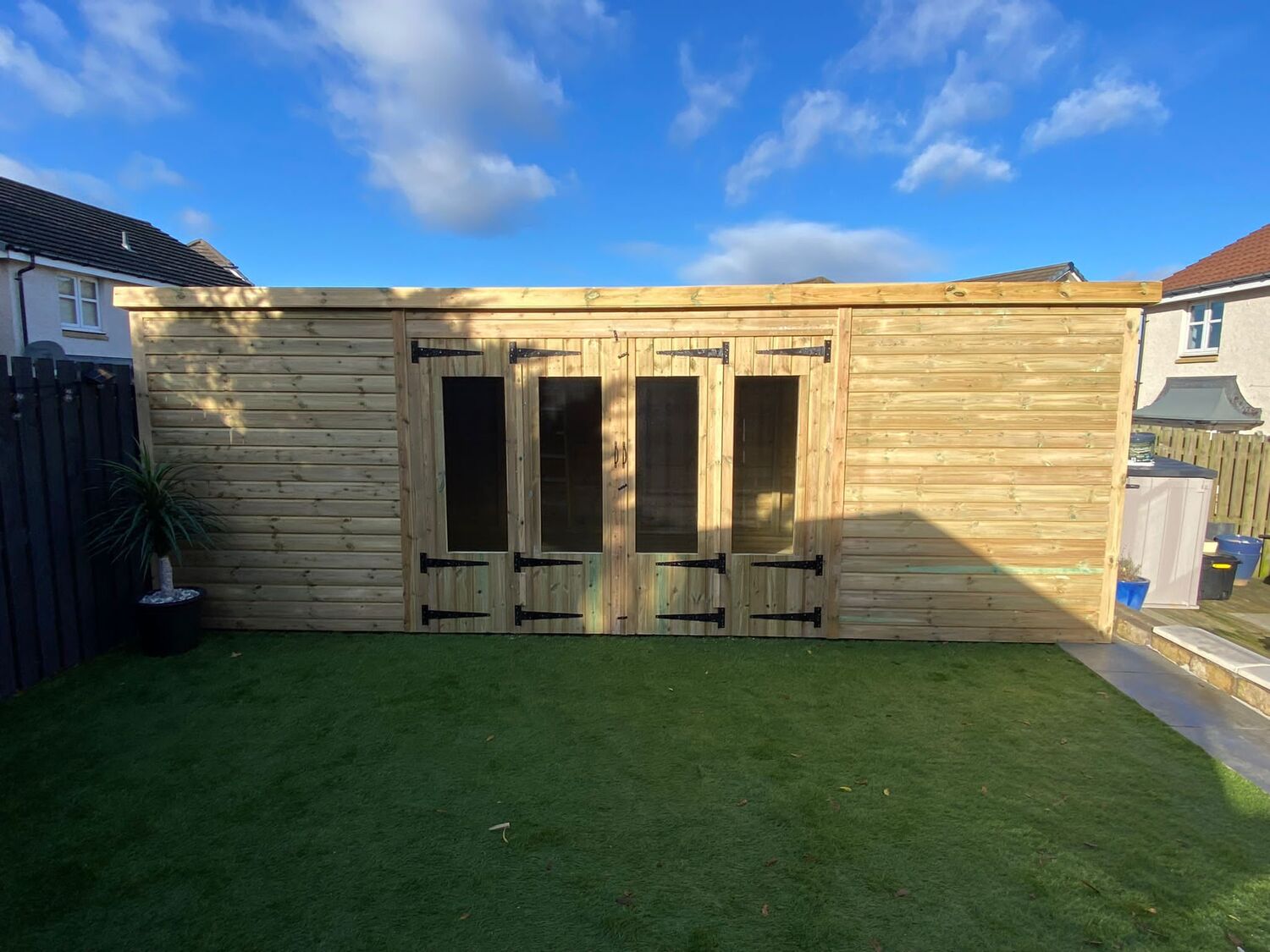 20x10 pent roofed summerhouse in our tanalised 19mm T&G.