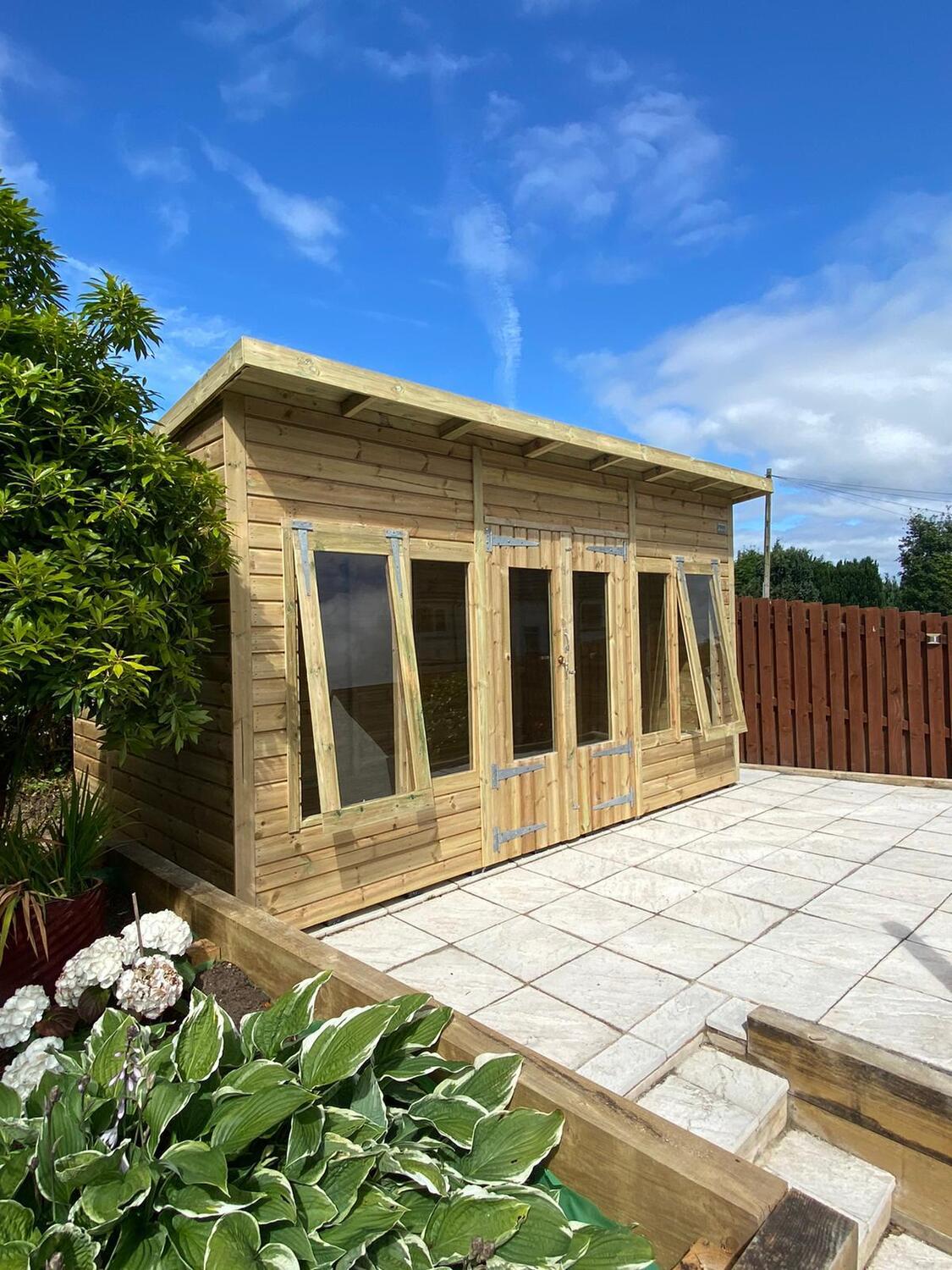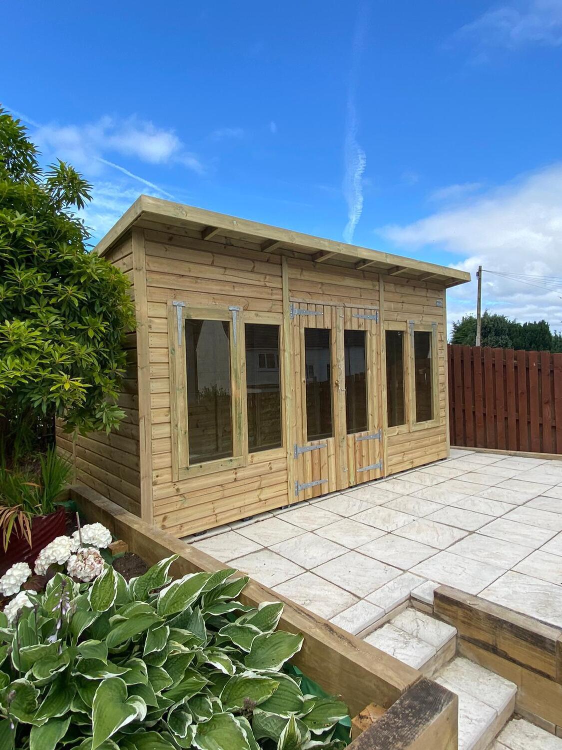 14x8 pent roofed summerhouse in our tanalised 19mm T&G.