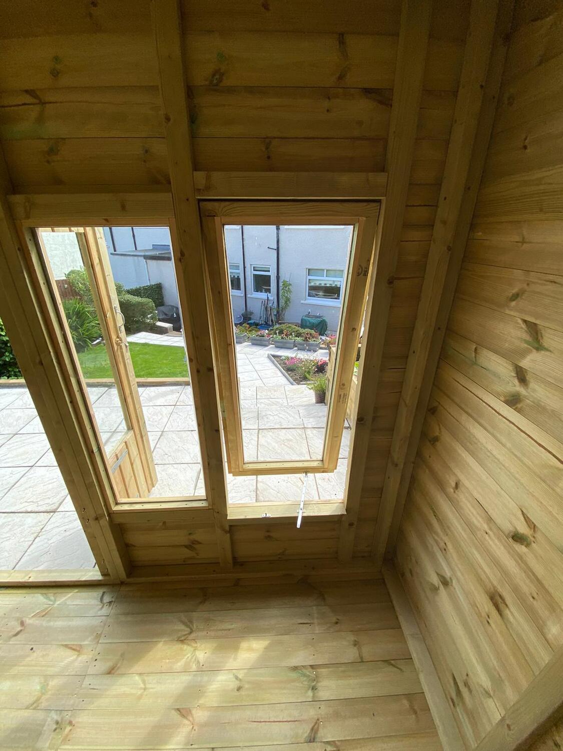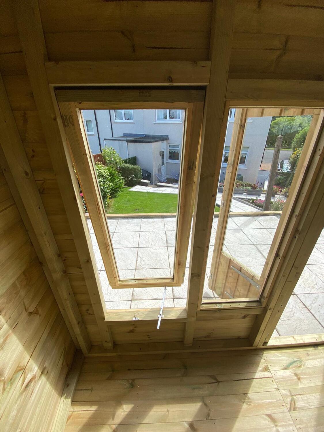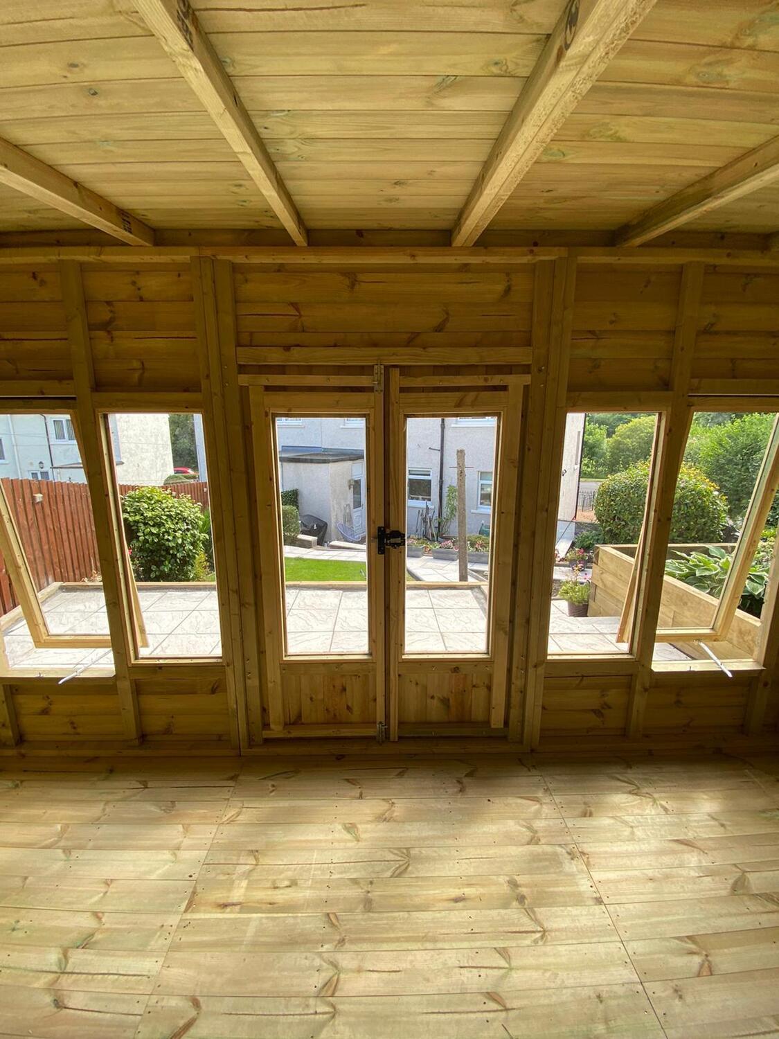 The summerhouse has 4ft wide 6ft high double door and 6 long windows, 2 of which are opening.