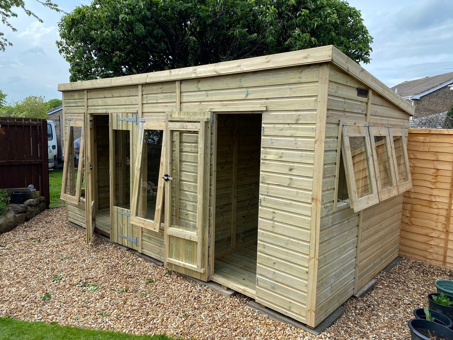 16x8 pent roofed summerhouse in our tanalised 19mm T&G.