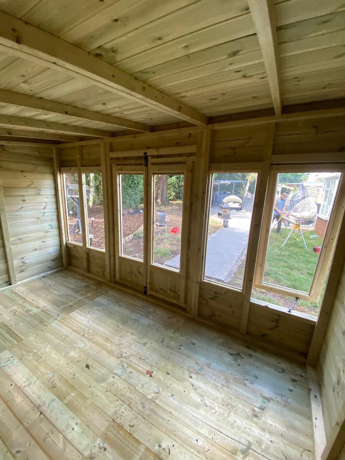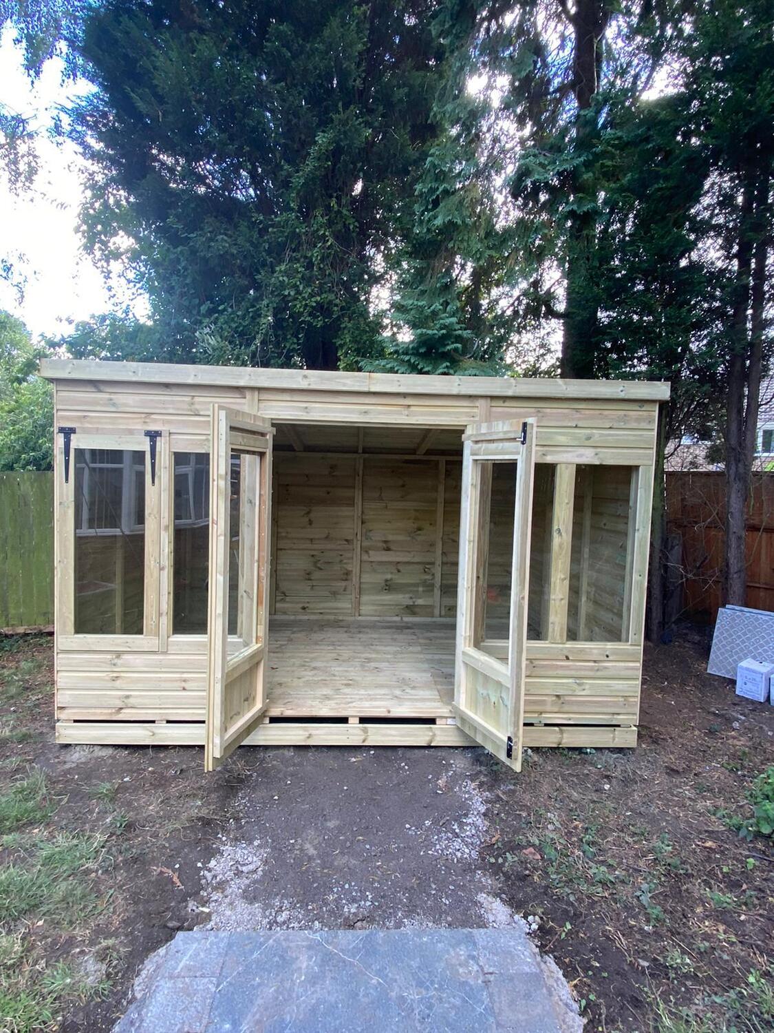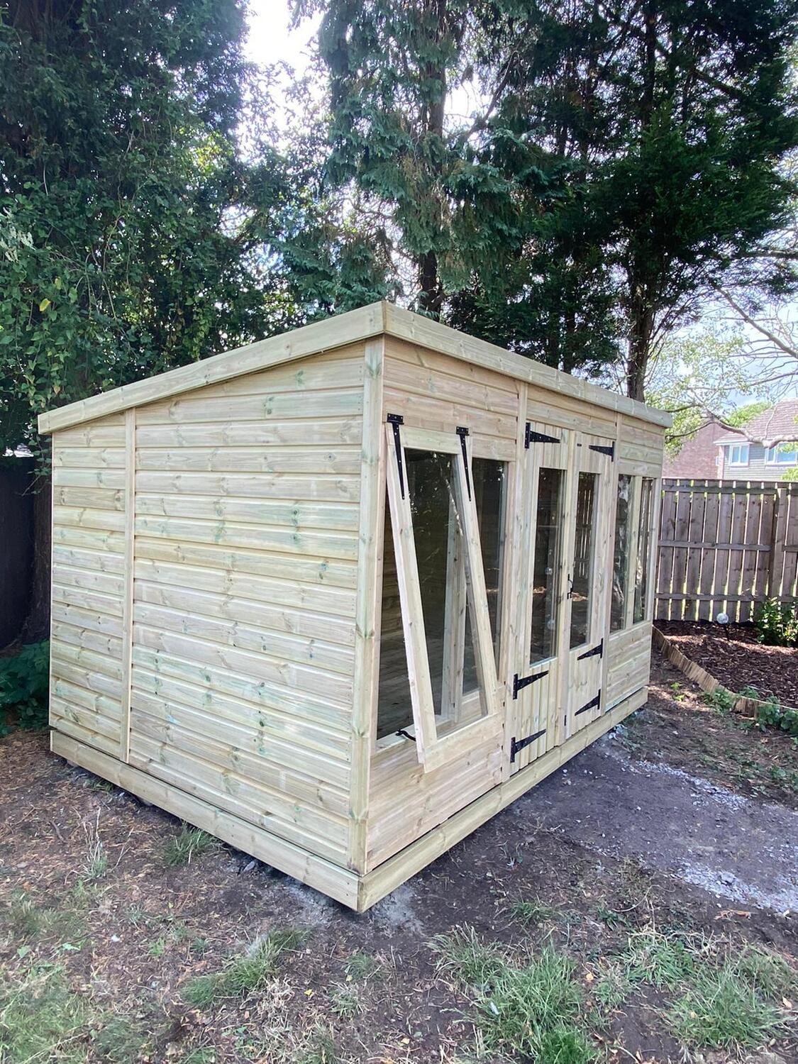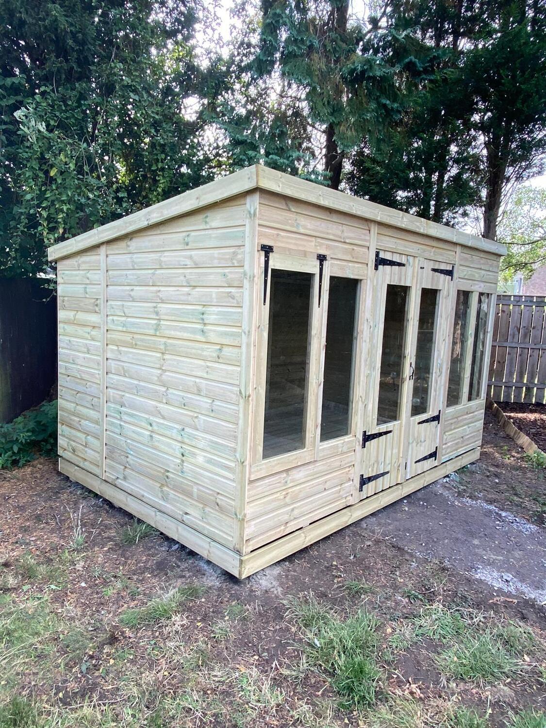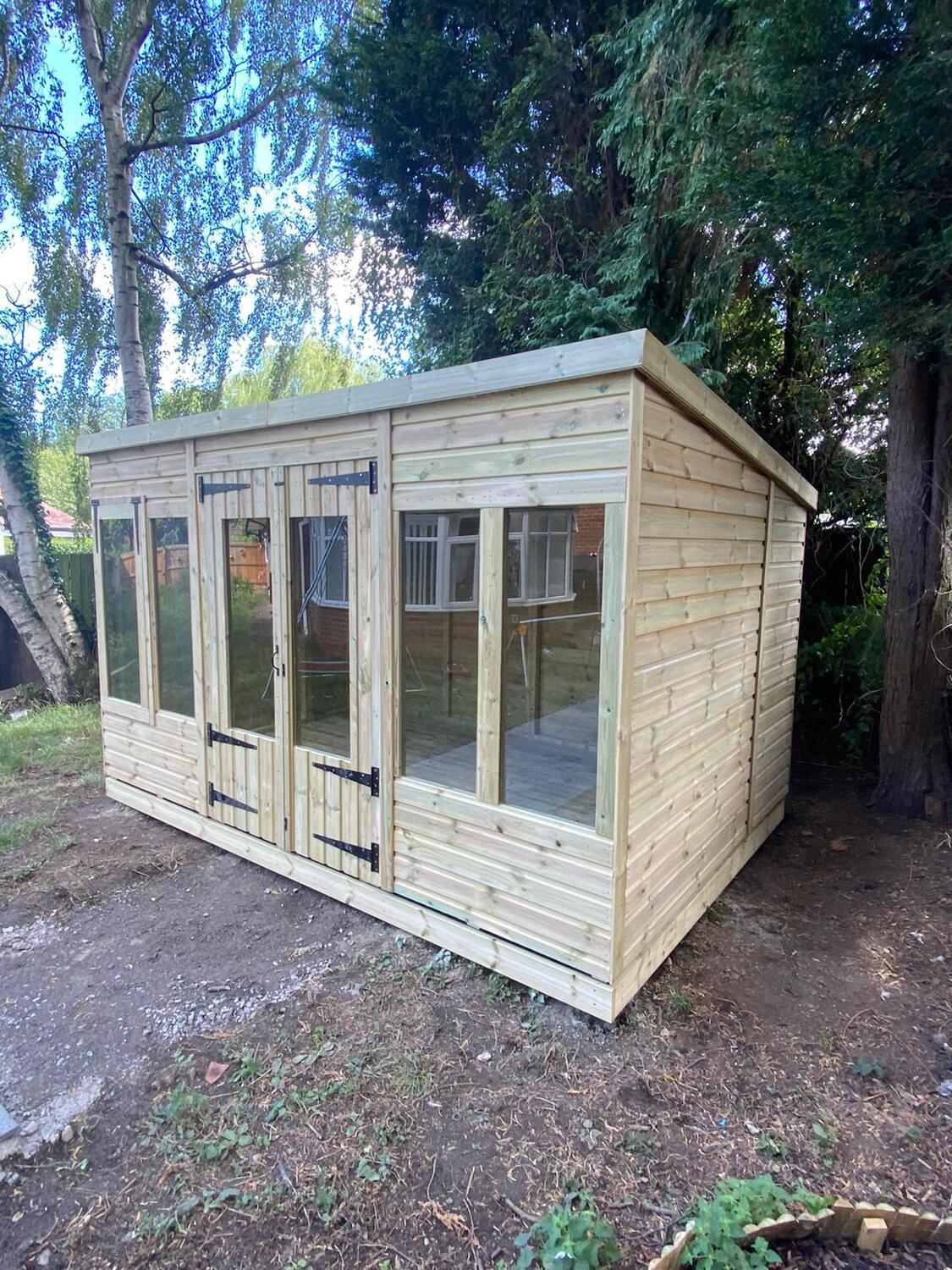 12x8 pent roofed summerhouse in our tanalised 19mm T&G.