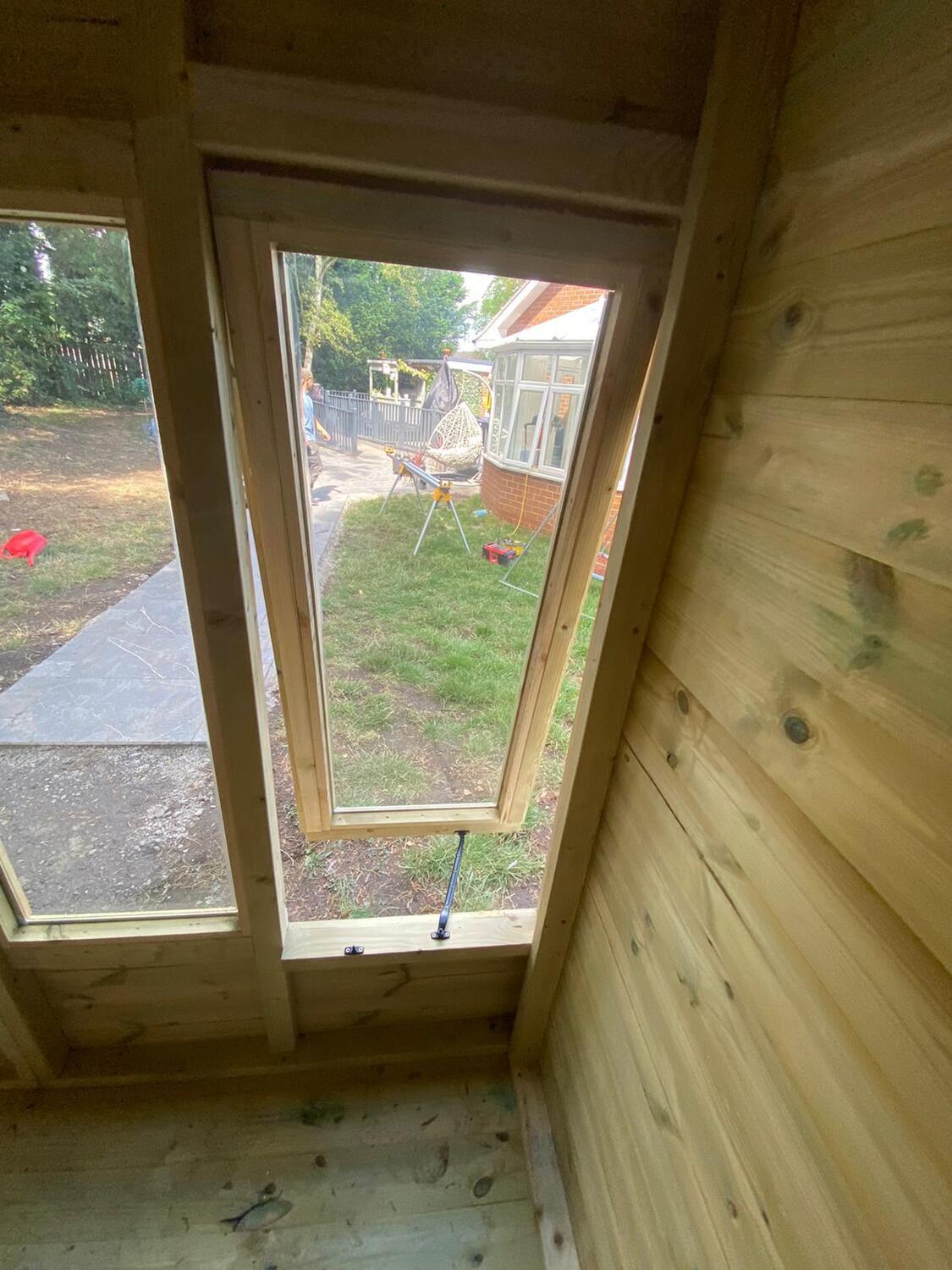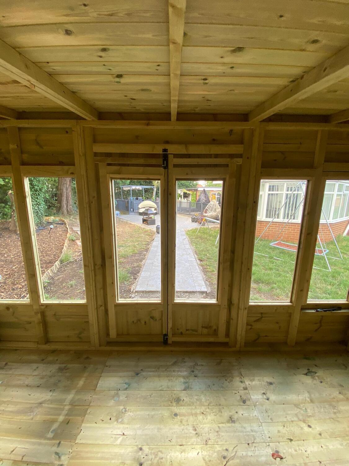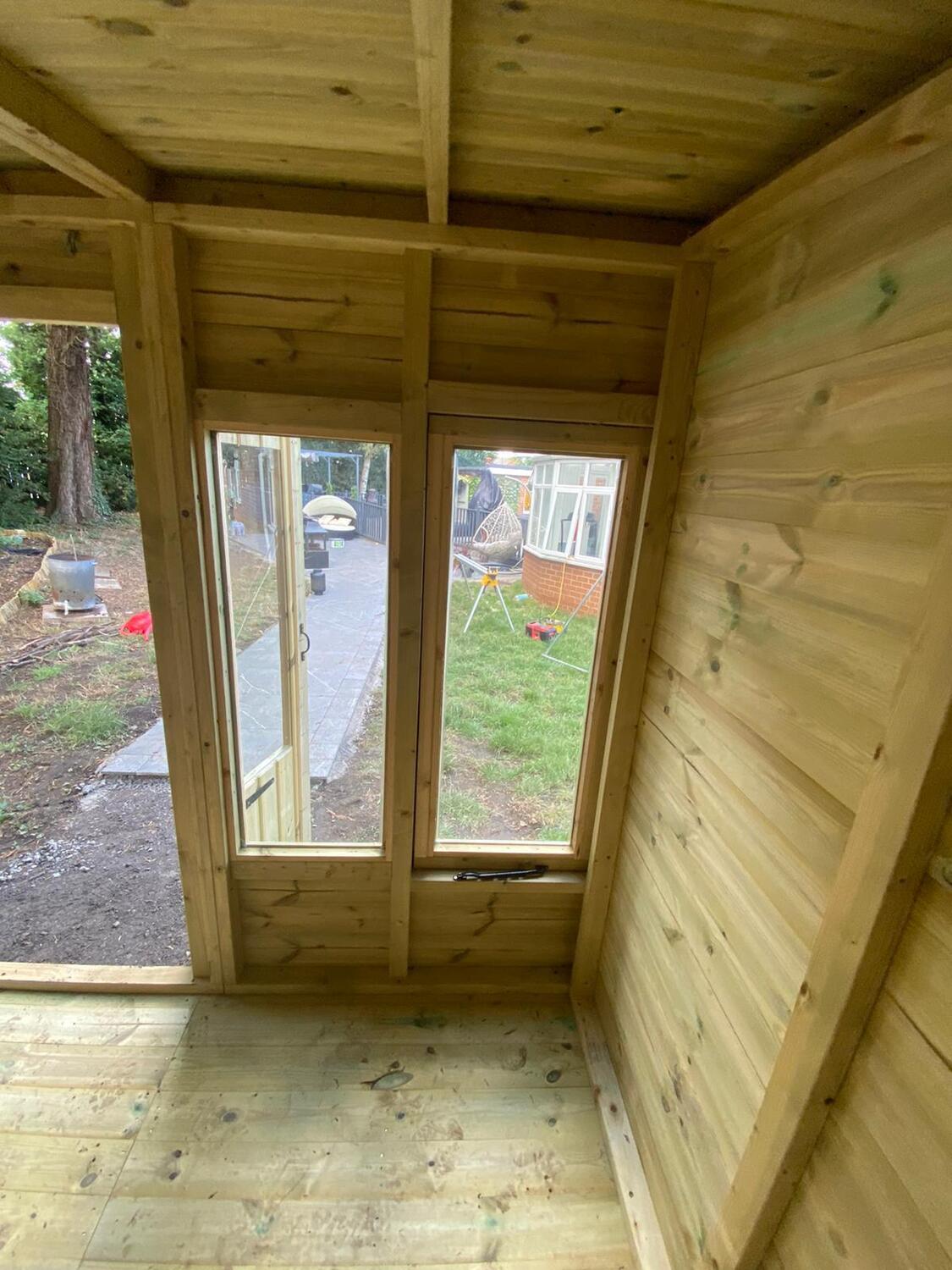 The summerhouse has 4ft wide 6ft high double door and 6 long windows, 1 of which is opening.