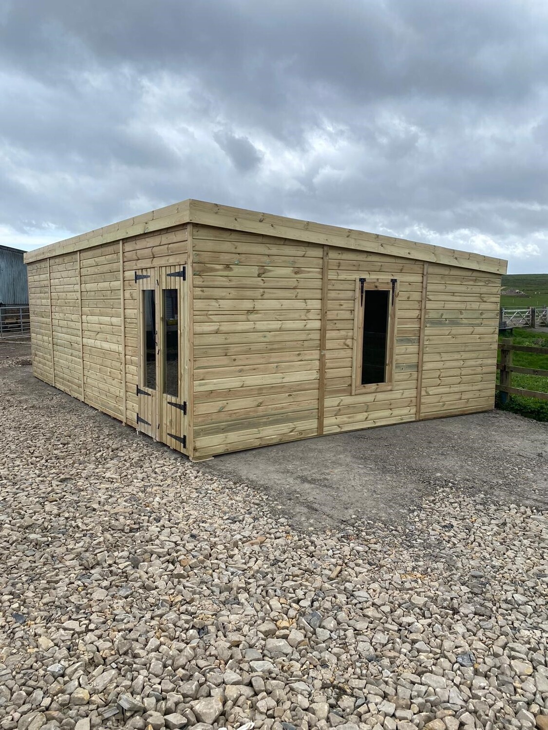 24x16 pent roof summerhouse/workshop in our tanalised 19mm T&G.