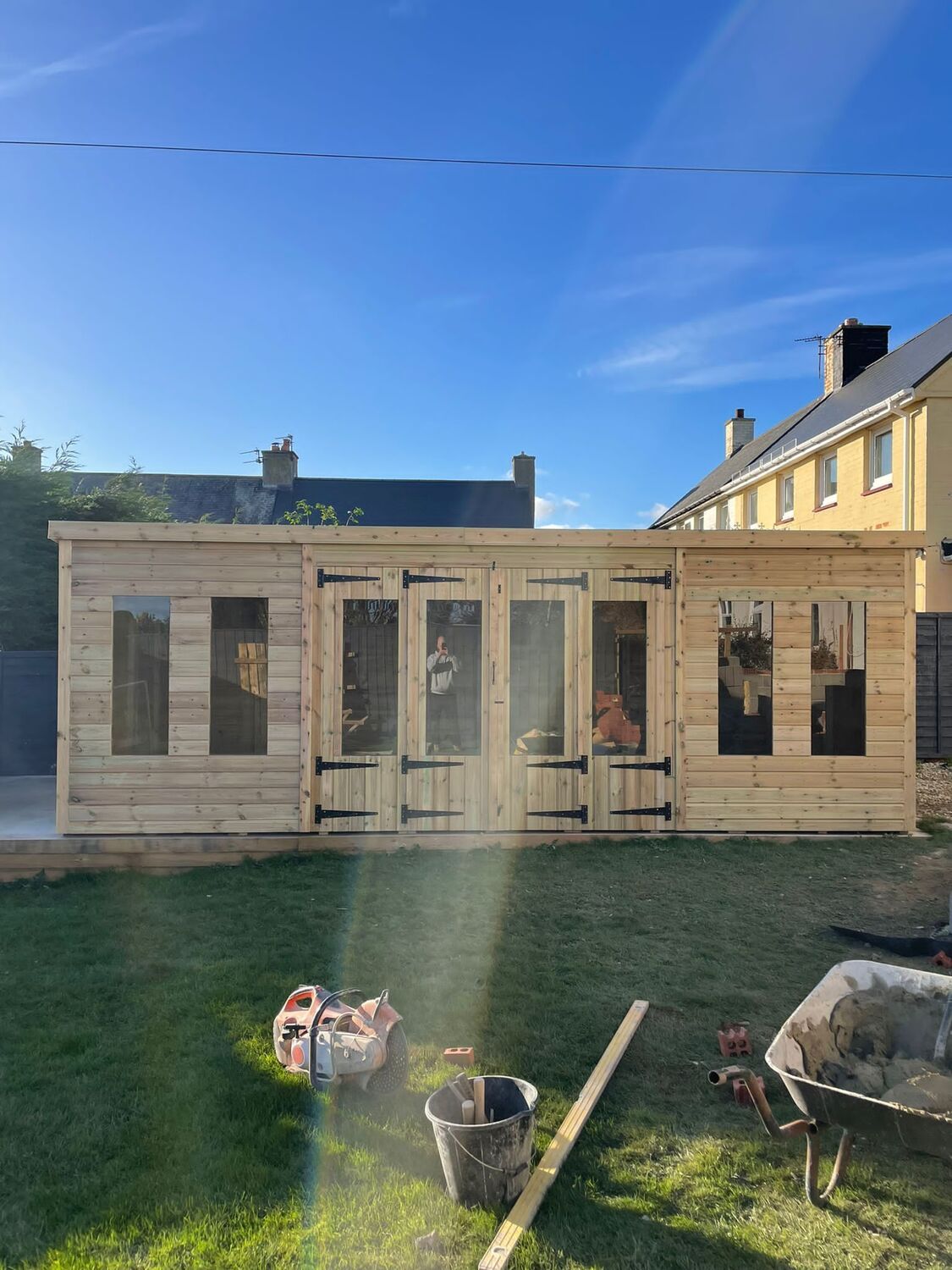 The summerhouse is 20ft wide at the front where the doors are and 10ft deep.