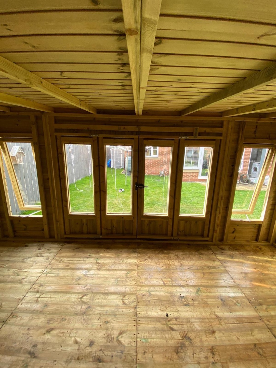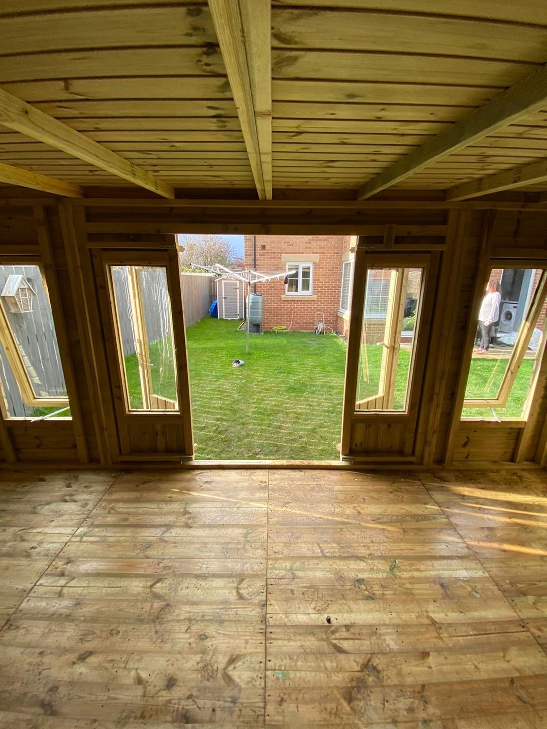 The summerhouse has 8ft wide 6ft high bifold doors and 6 long windows, 2 of which are opening.