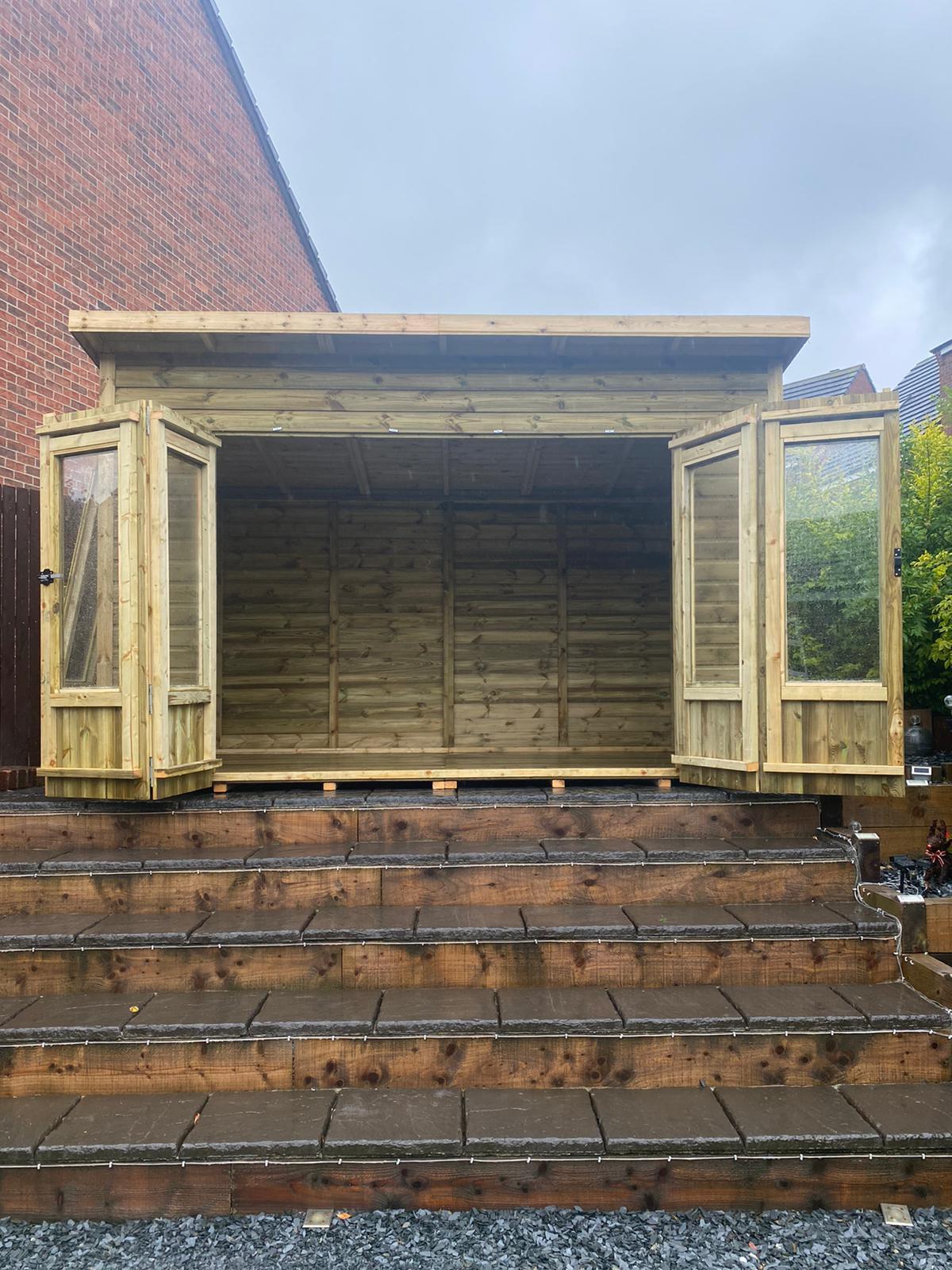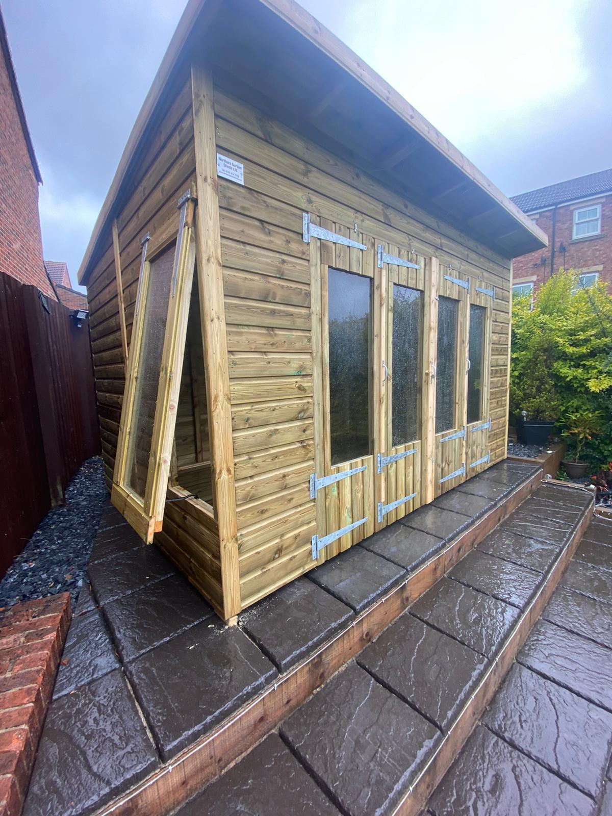 12x8 pent roofed summerhouse in our tanalised 19mm T&G.