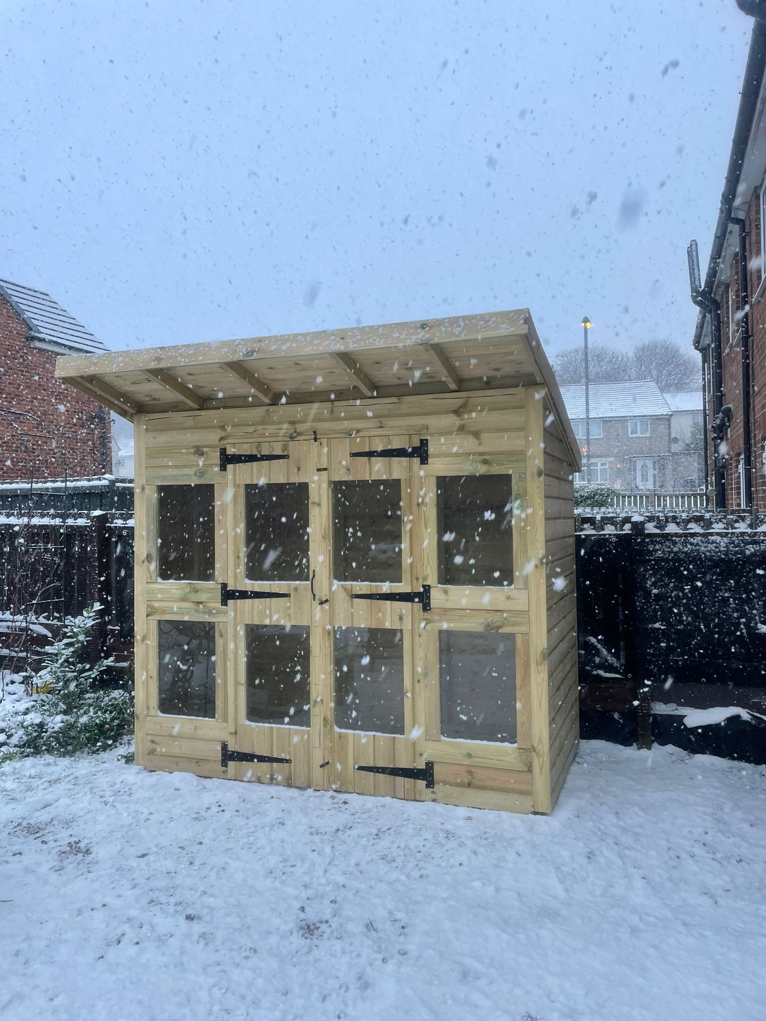 The summerhouse has 4ft wide 6ft high double door and 8 standard windows.
