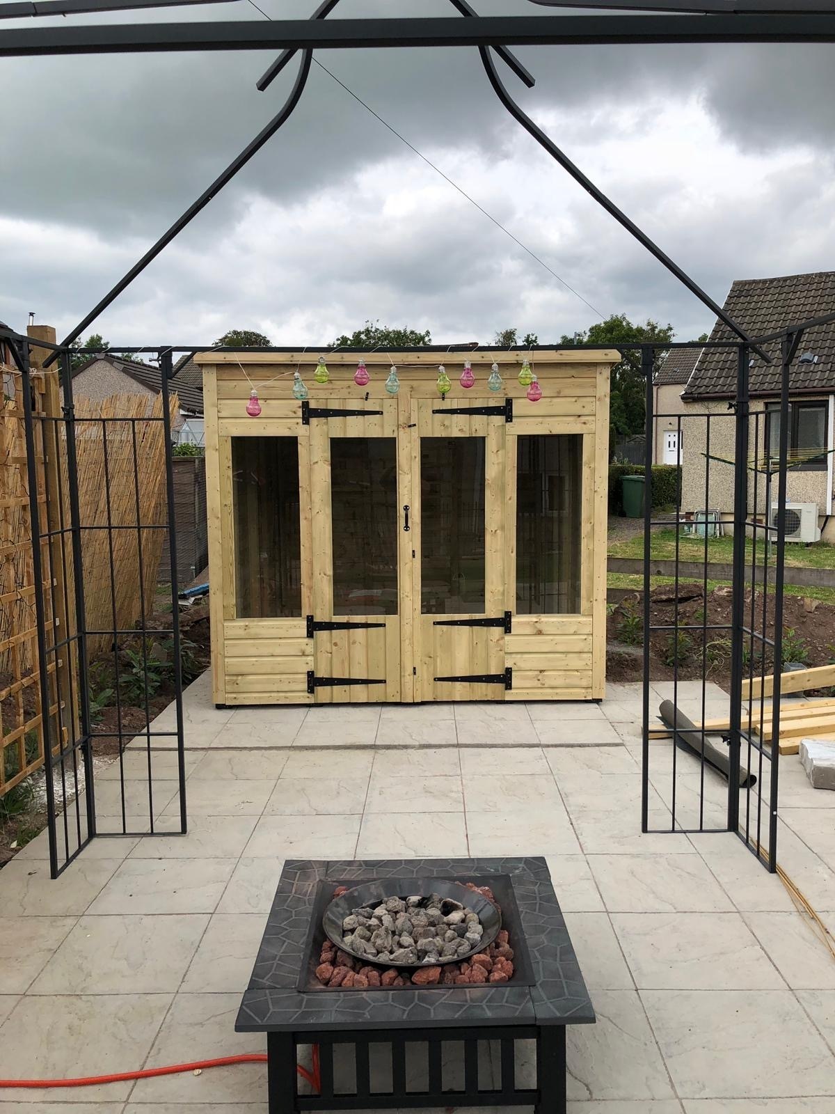 The summerhouse has 4ft wide 6ft high double door and 4 long windows.