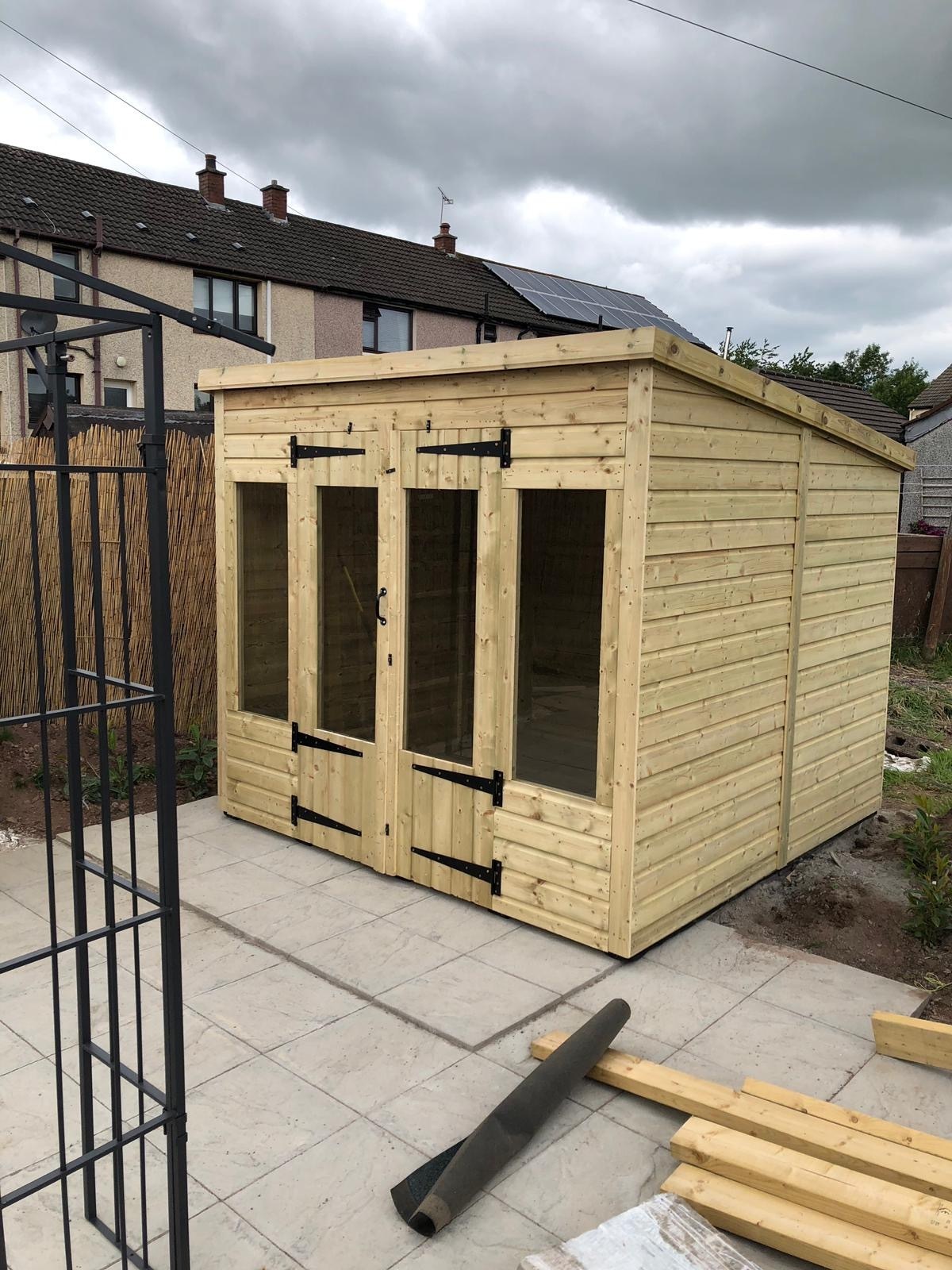 8x8 pent roofed summerhouse in our tanalised 19mm T&G.