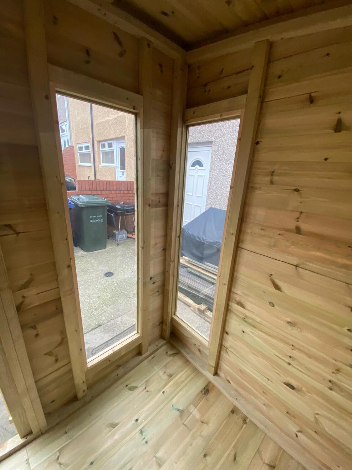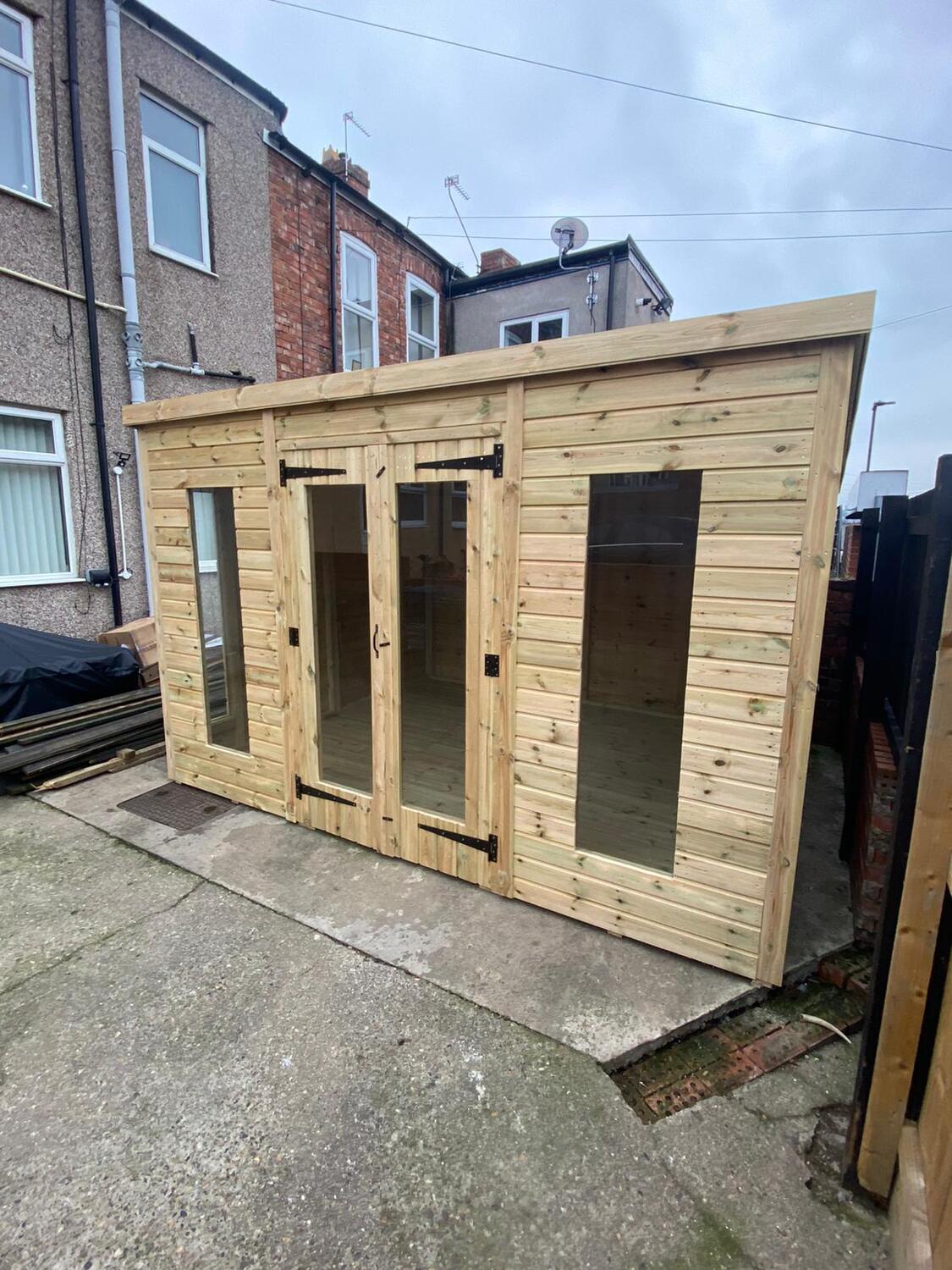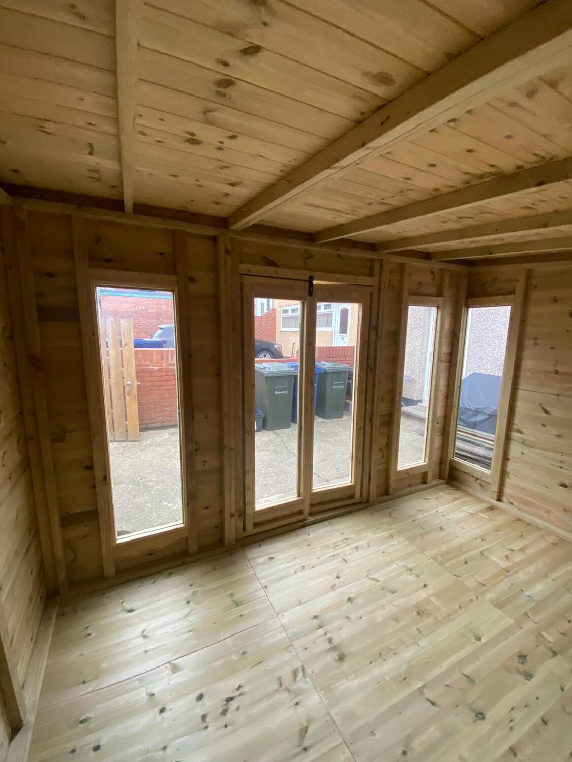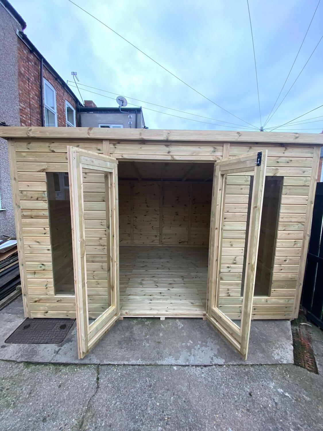 The summerhouse has 4ft wide 6ft high double door and 5 full length windows.