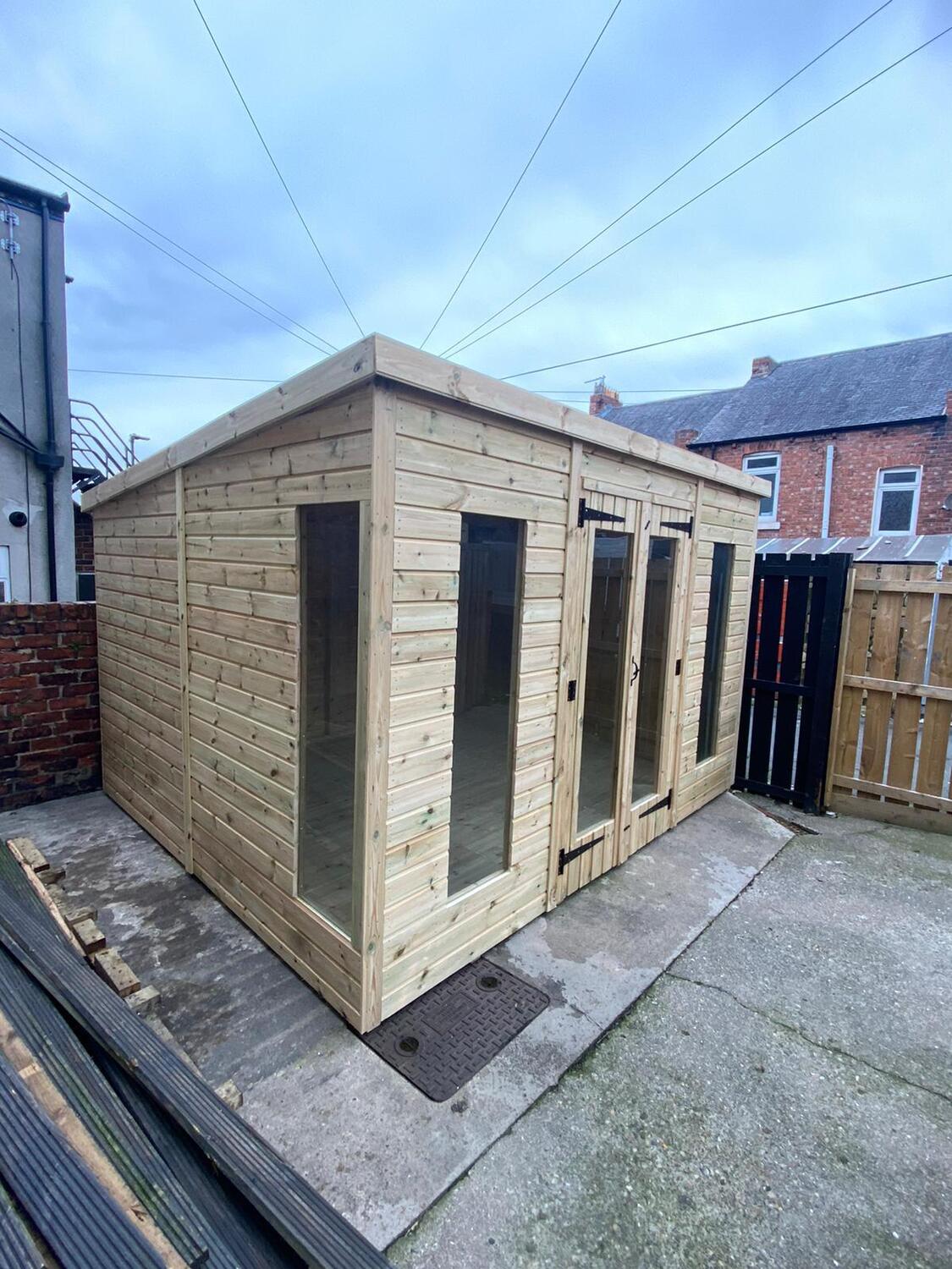 12x10 pent roofed summerhouse in our tanalised 19mm T&G.