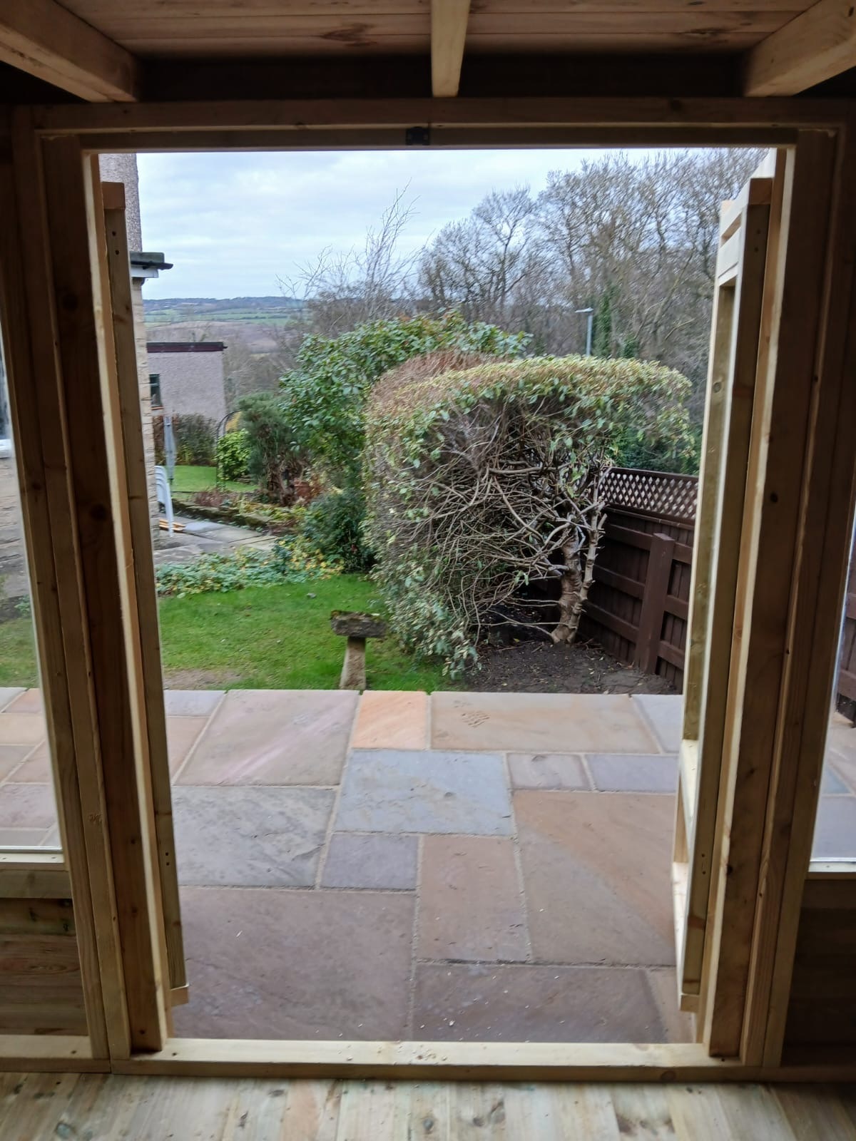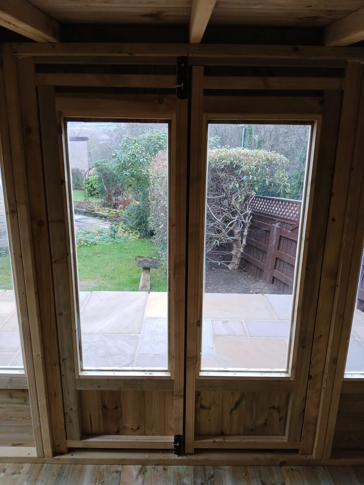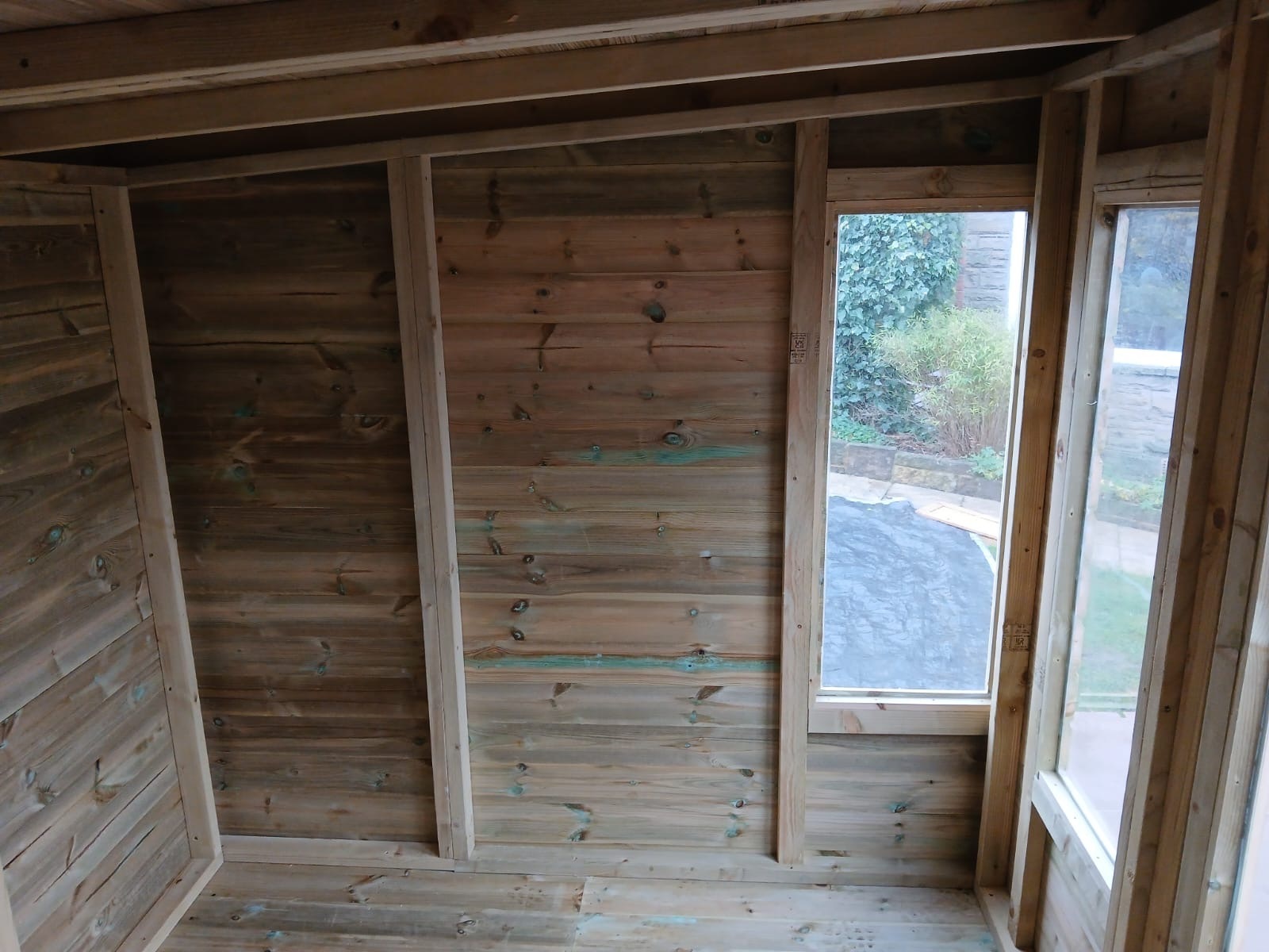 The summerhouse has 4ft wide 6ft high double door and 5 long windows.