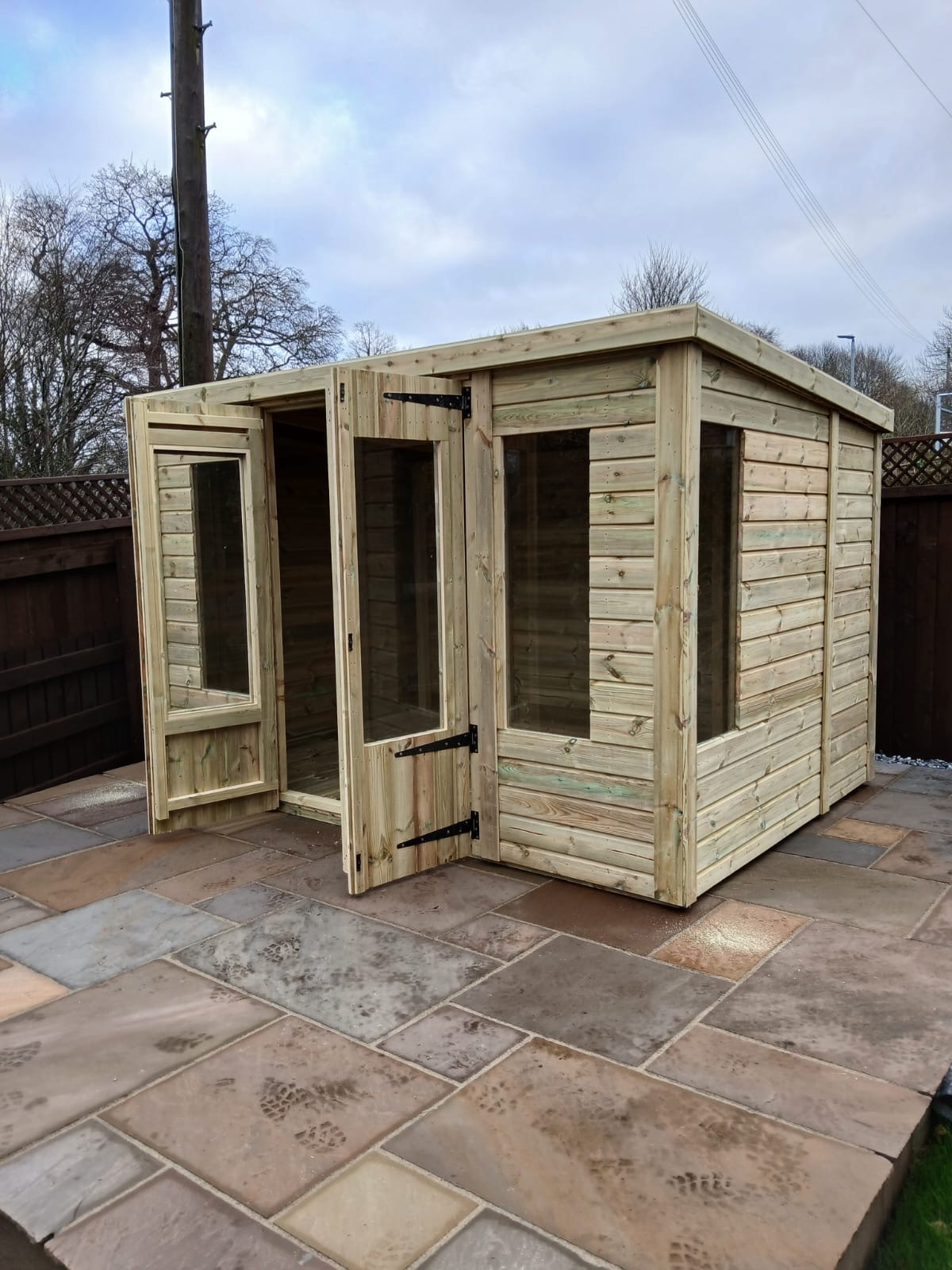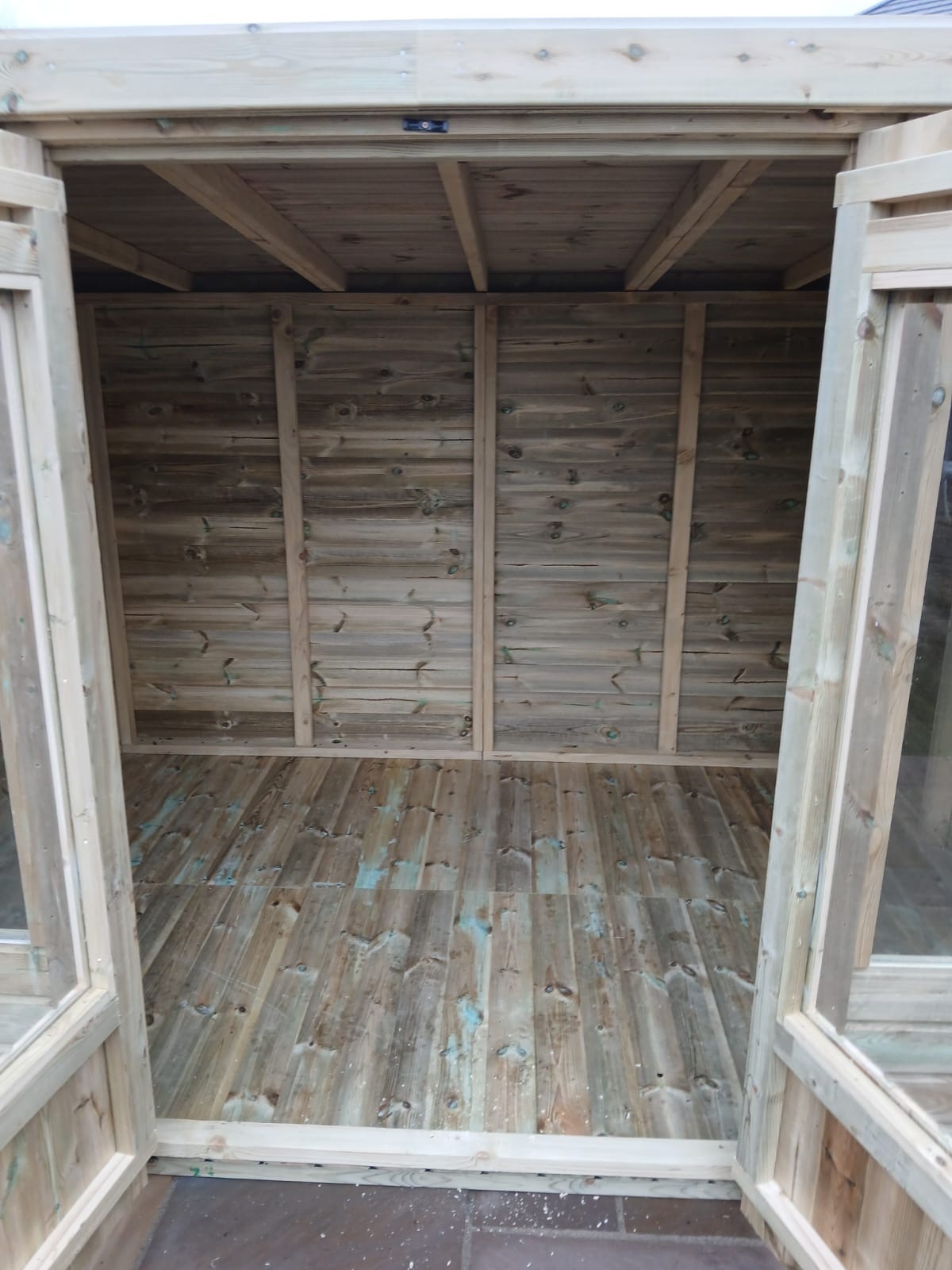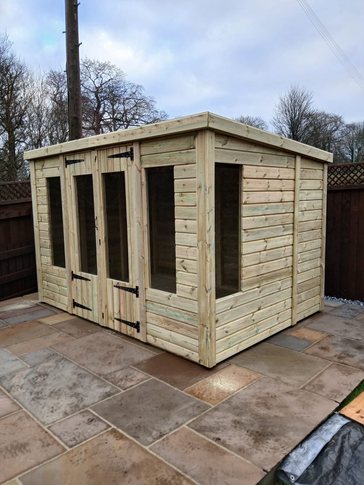 10x8 pent roofed summerhouse in our tanalised 19mm T&G.