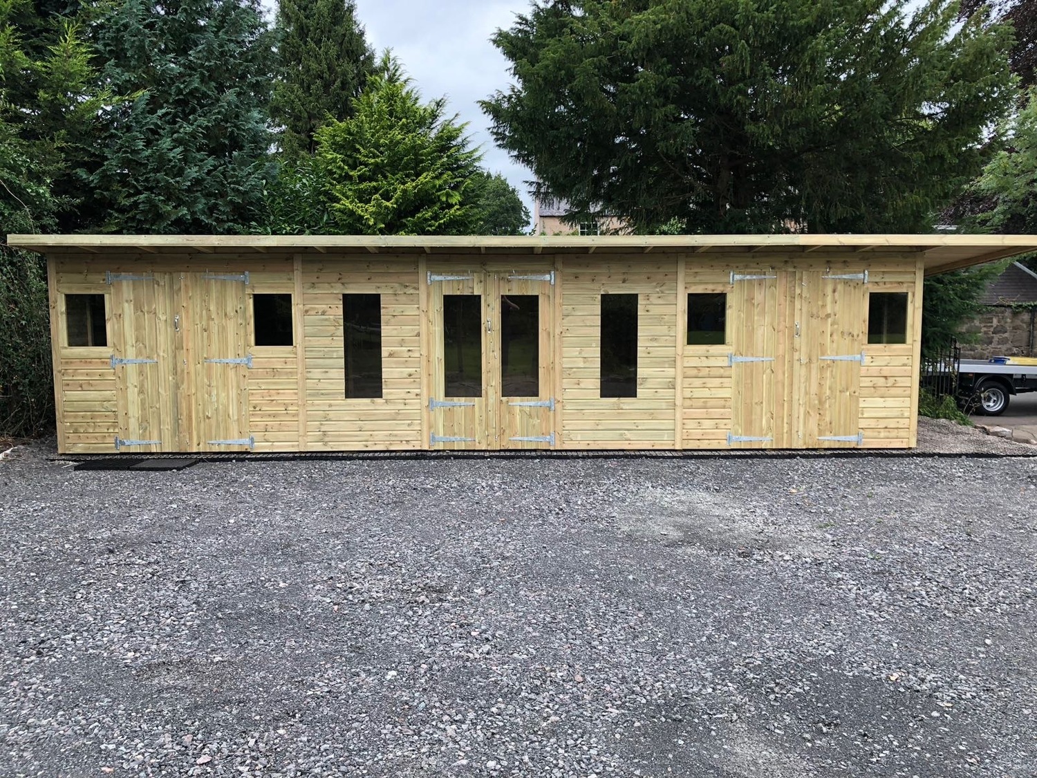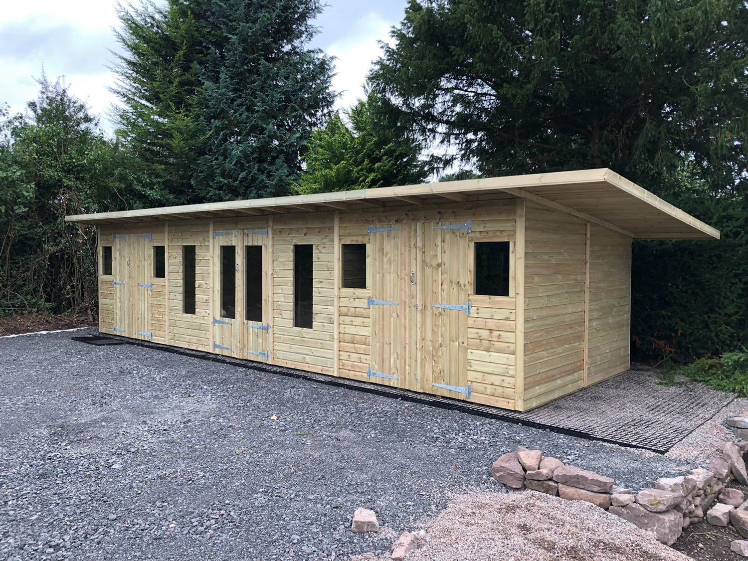 with 2ft canopy & TWO internal partitions to make separate shed areas & 3ft side canopy of log store