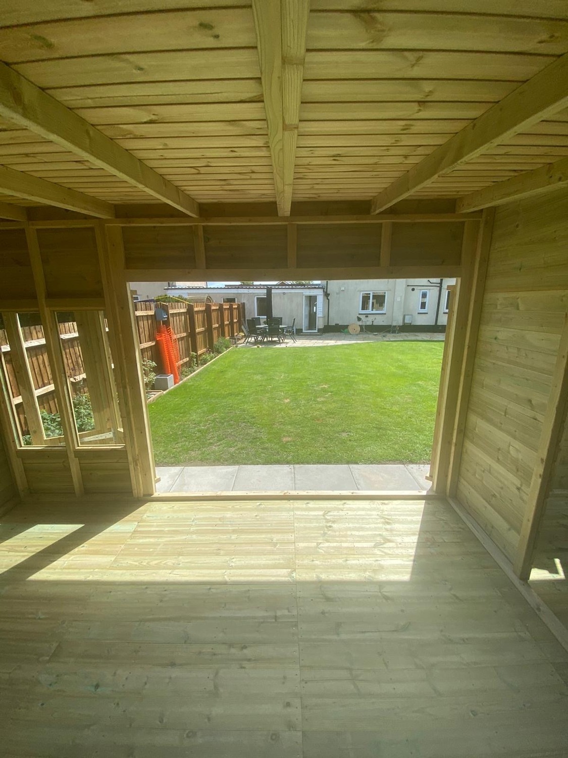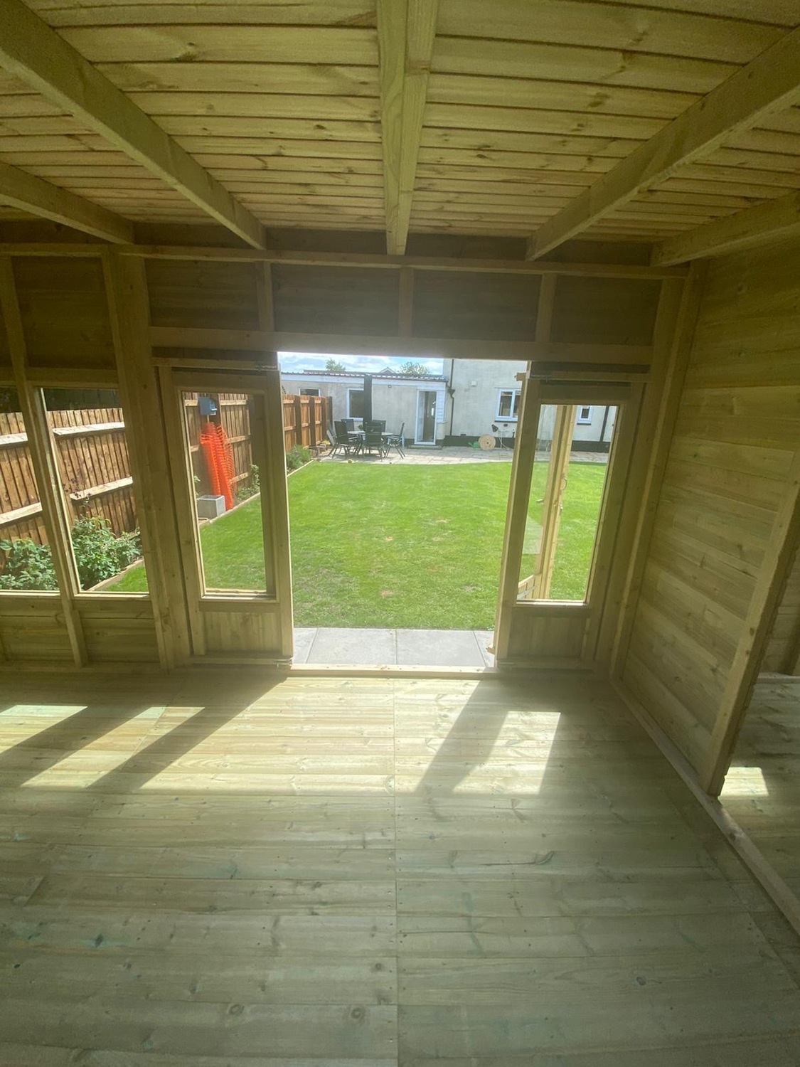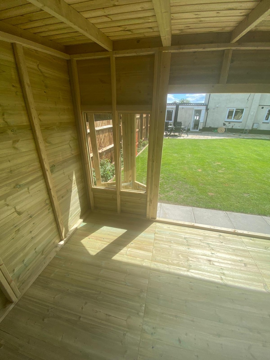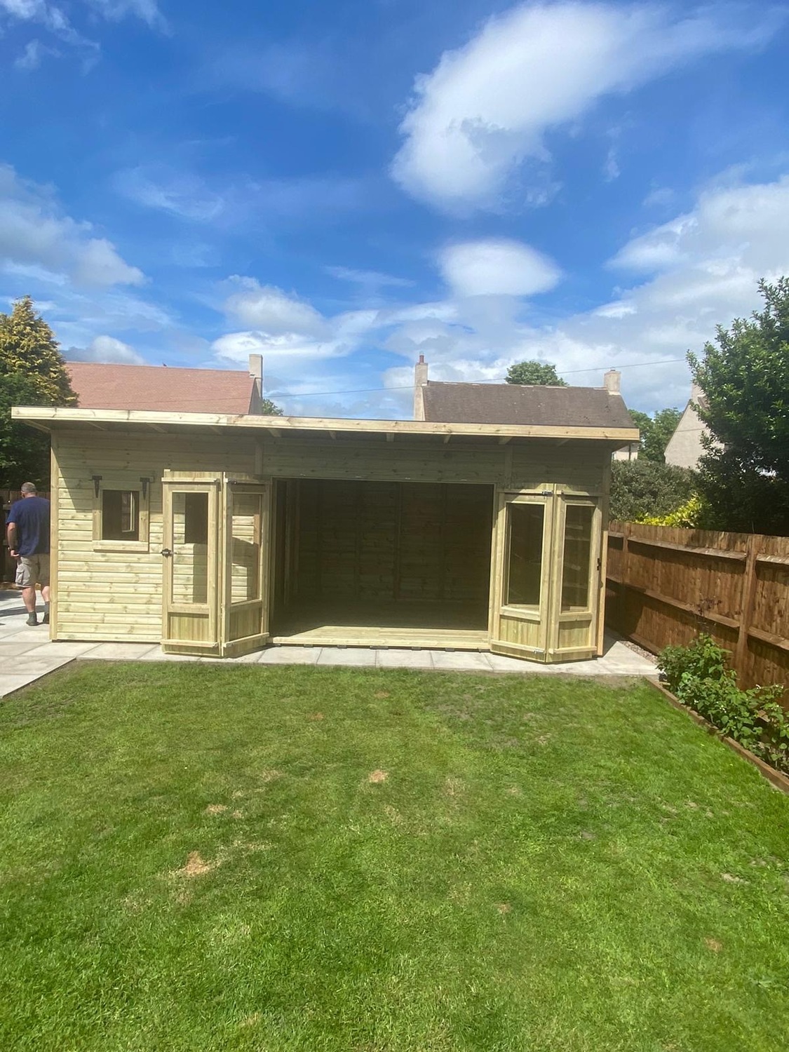 with Bi-Folding doors, long windows & partition to make separate shed area