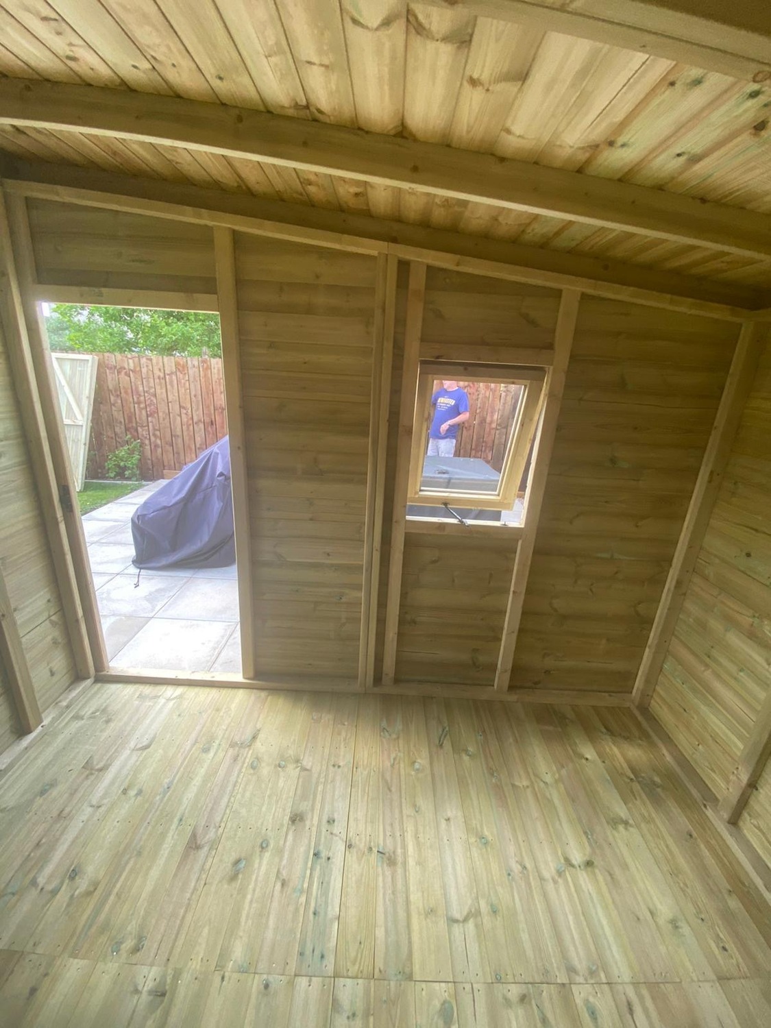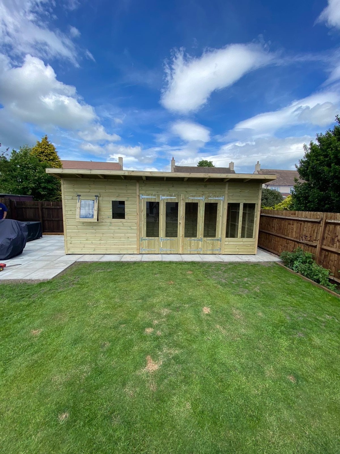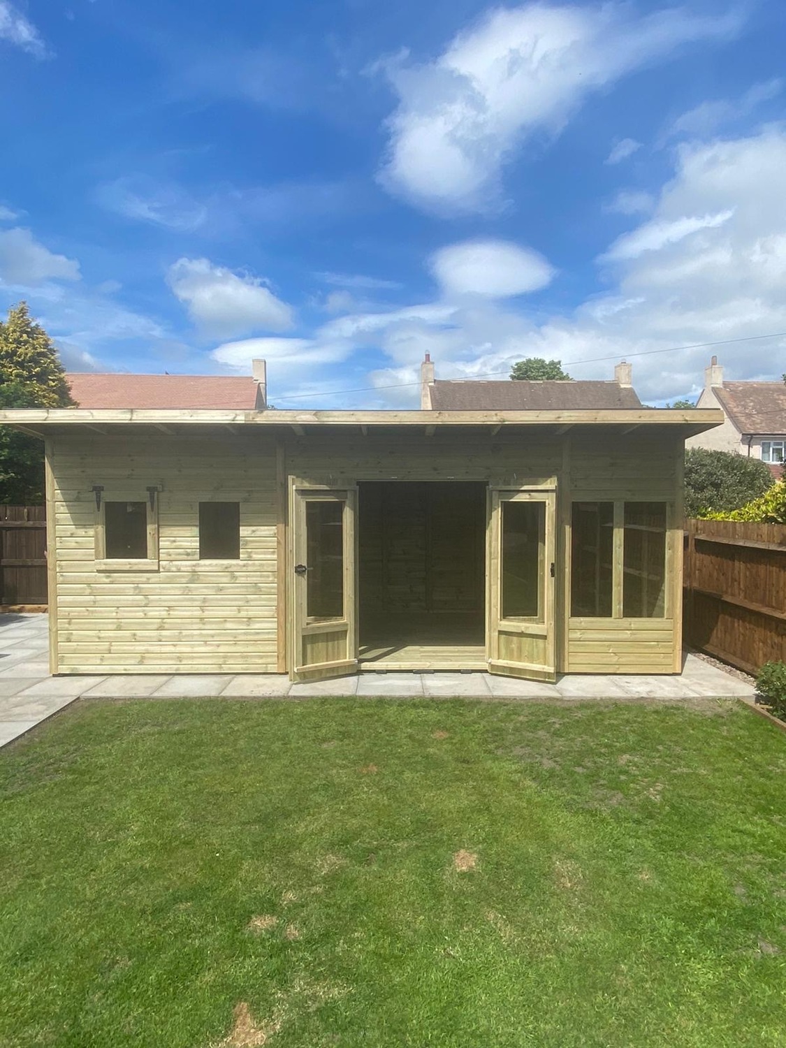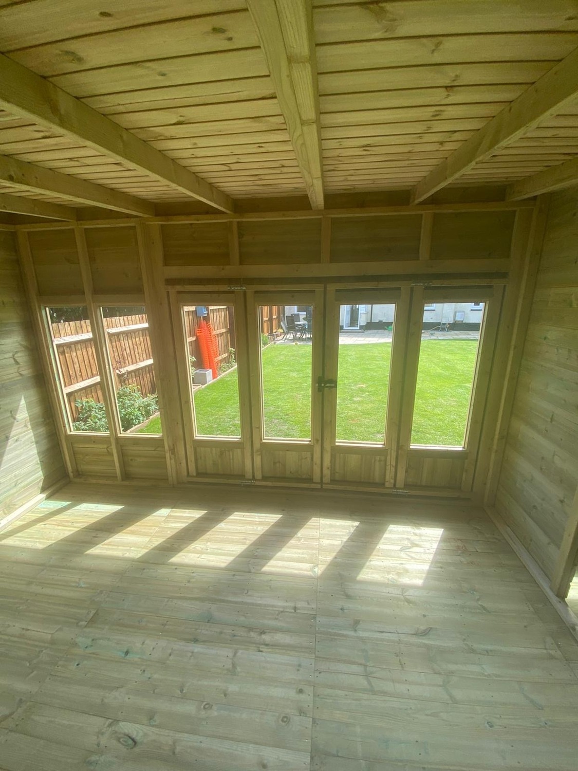 with Bi-Folding doors, long windows & partition to make separate shed area