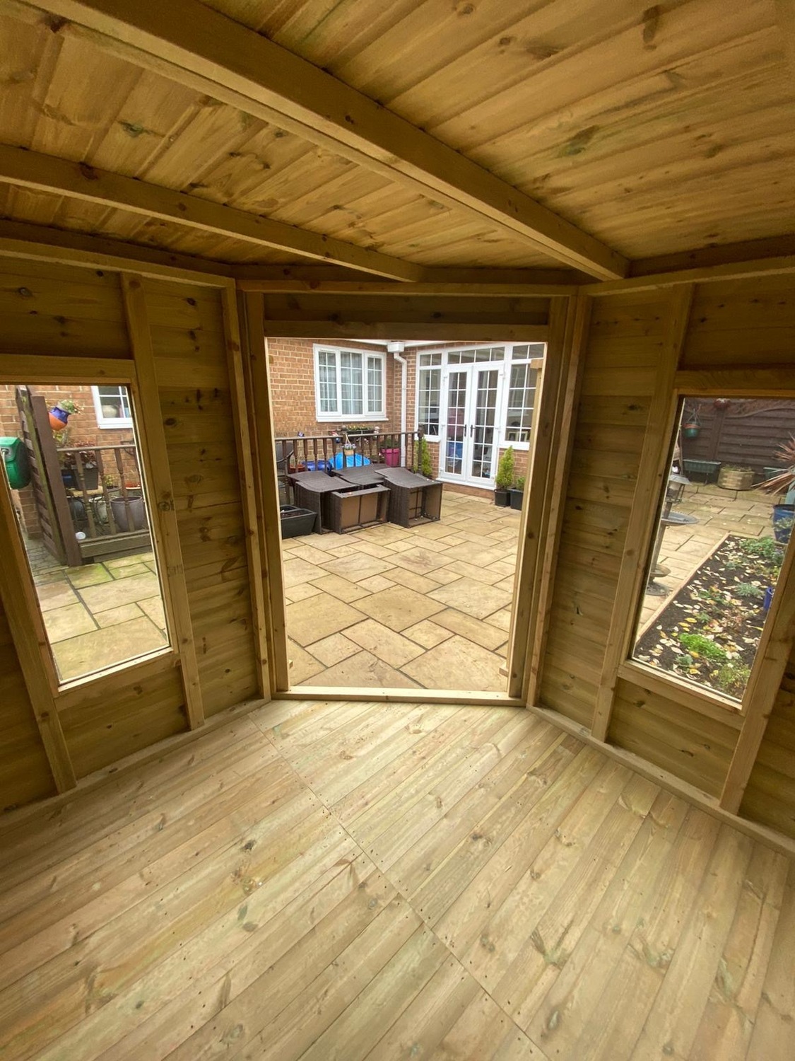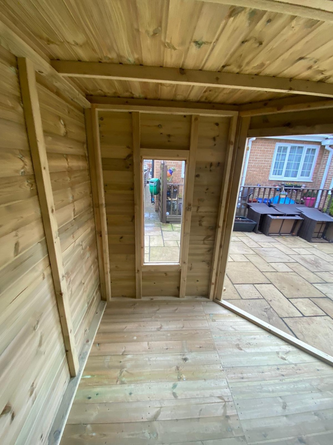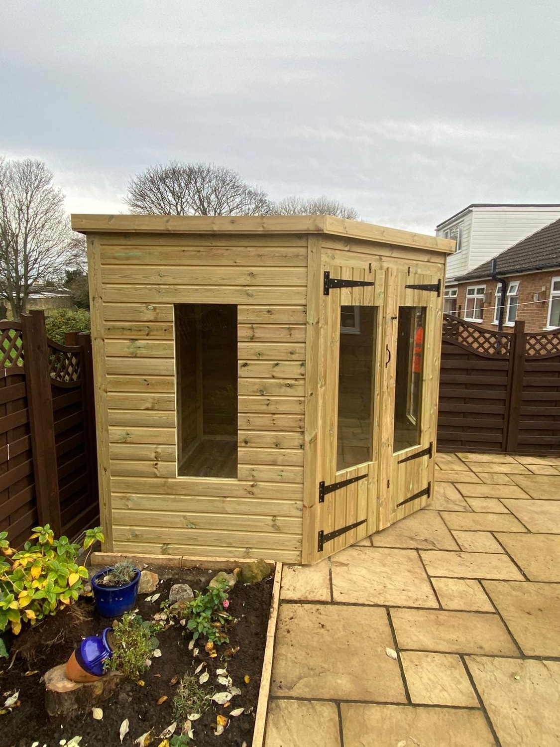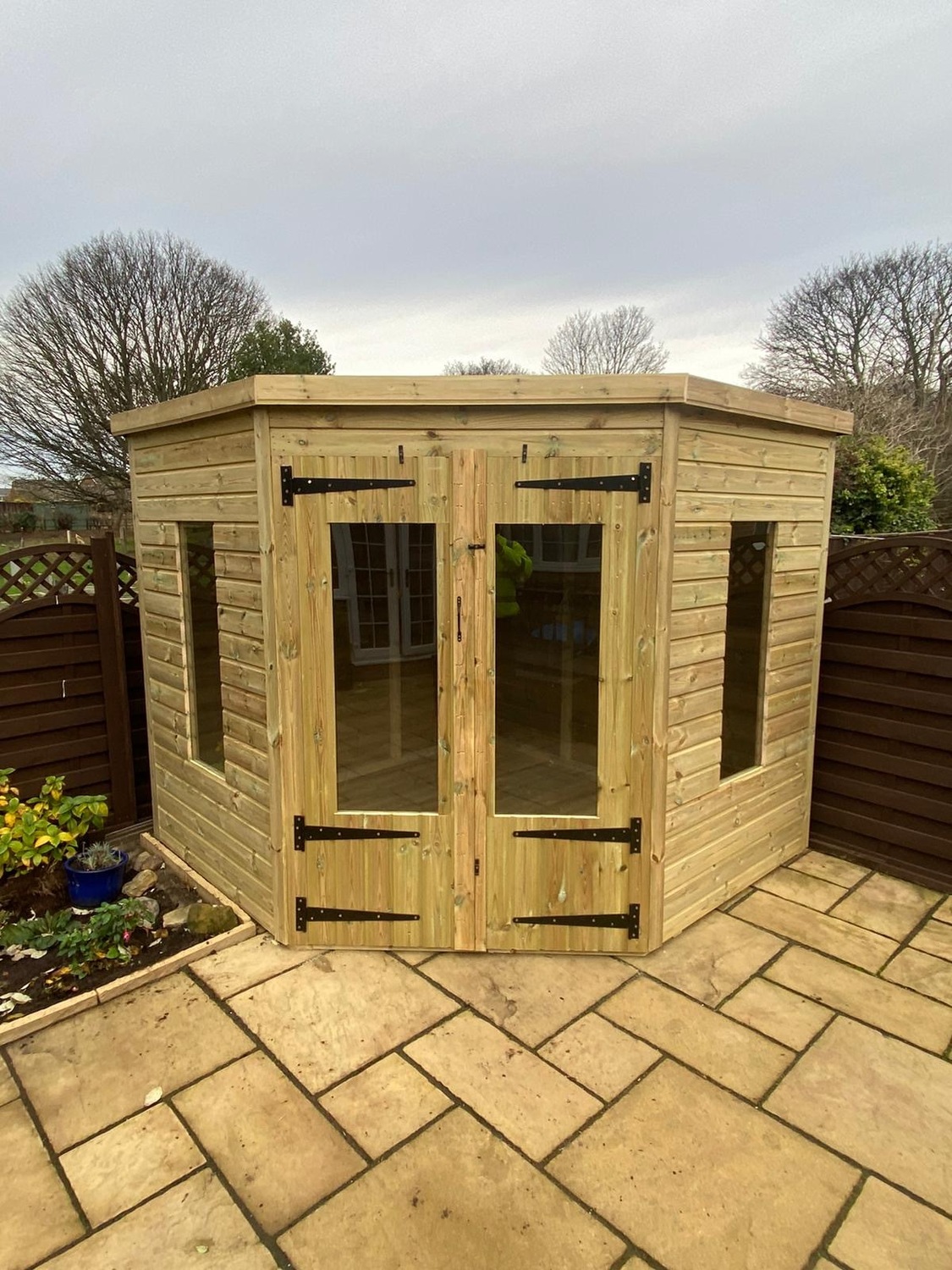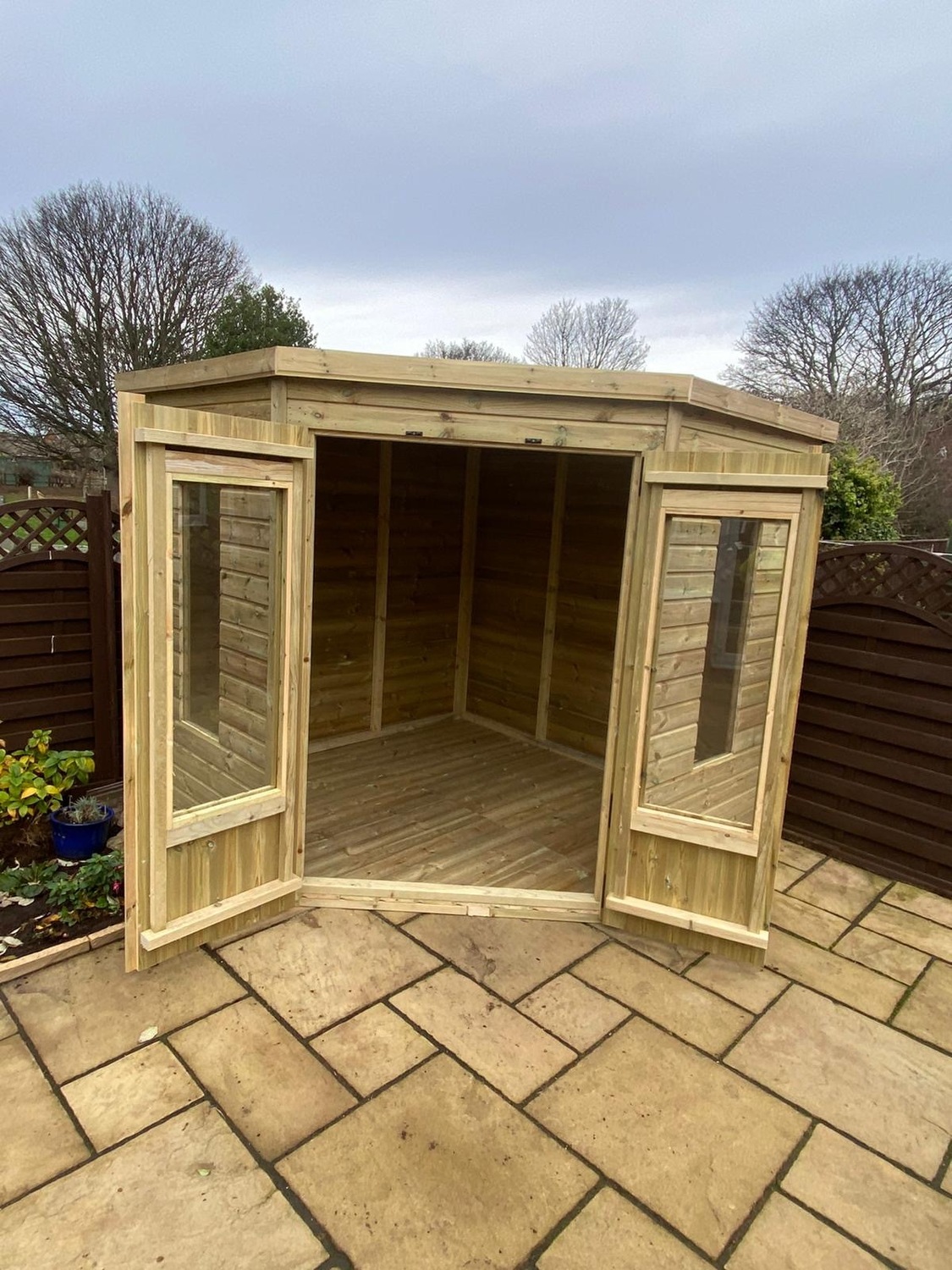 8x8 corner summerhouse in our tanalised 19mm T&G