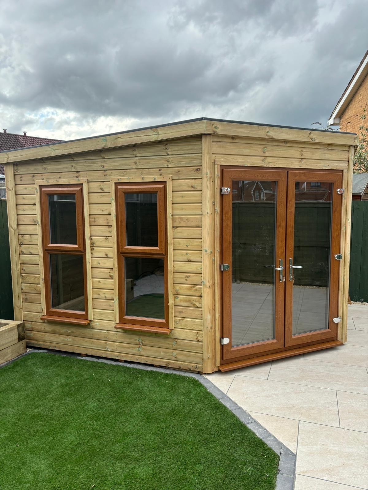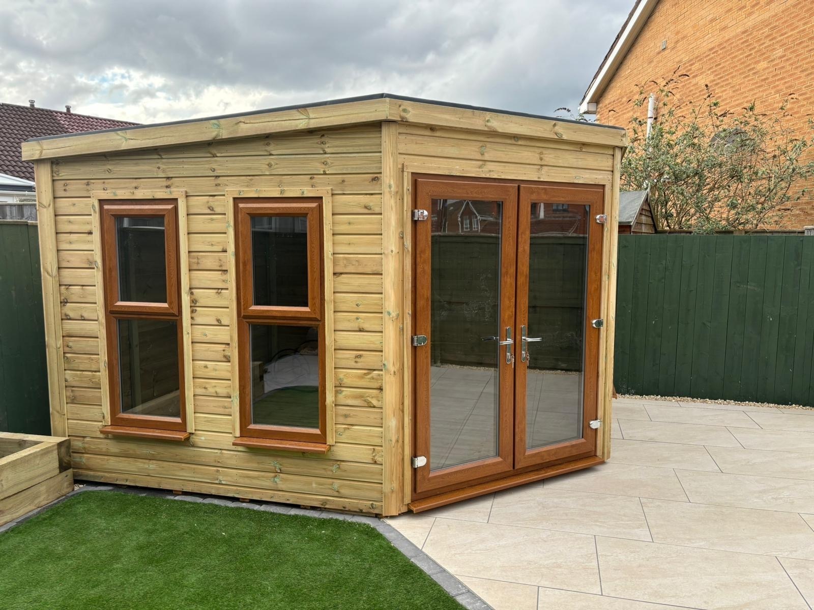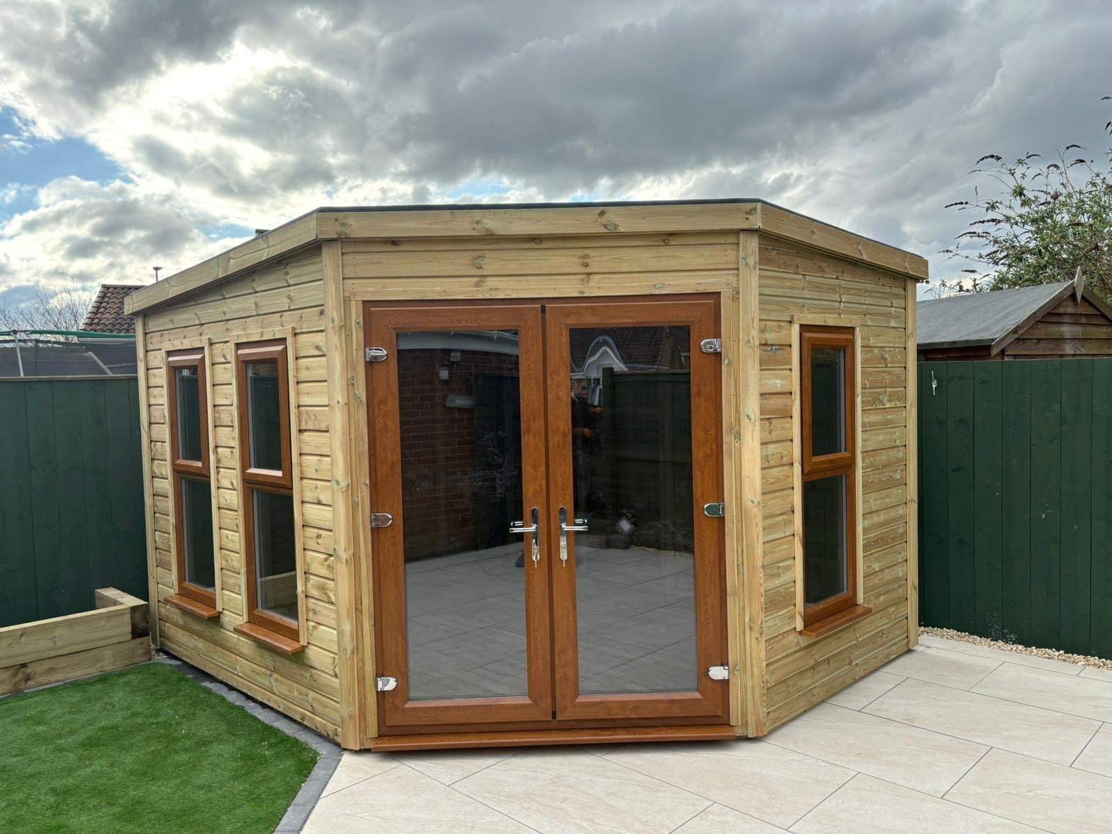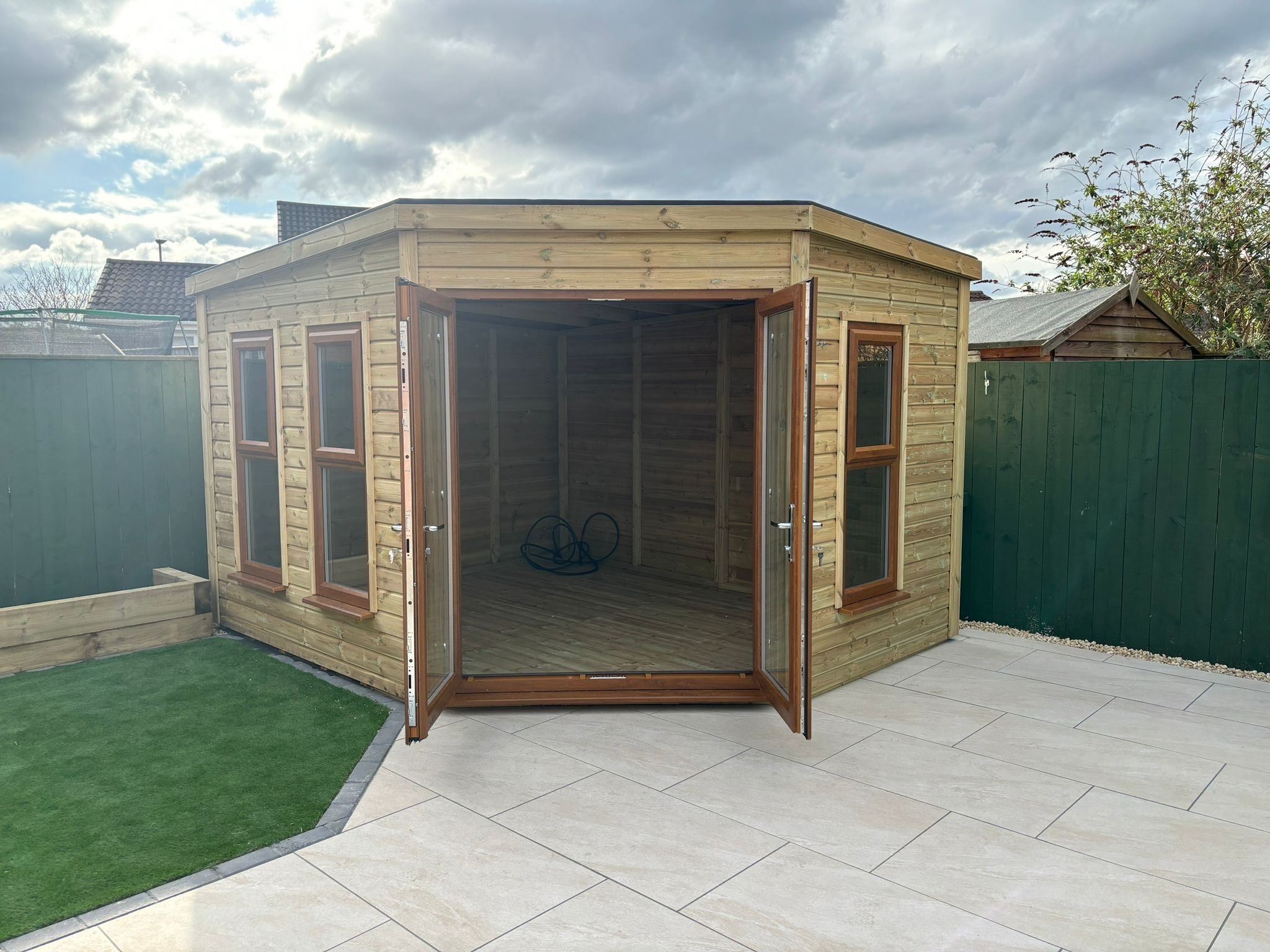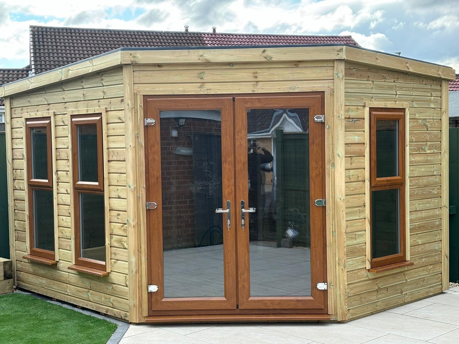 12x10 corner summerhouse in our tanalised 19mm T&G.